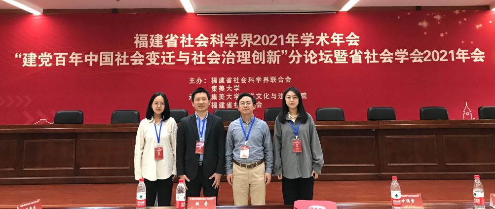 2021年11月20日,由福建省社会科学界联合会、集美大学主办,集美大学海洋文化与法律学院、福建省社会学会承办的福建省社科界2021年学术年会“建党百年中国社会变迁与社会治理创新”分论坛暨省社会学会2021年会在集美大学召开,来自厦门大学、福州大学、永利集团、集美大学、福建师范大学及闽南师范大学等省内高校的社会学、社会工作及相关专业的专家学者和学生参加会议,围绕相关议题议题展开学术交流。我院副院长王嘉顺副教授、社会学系系主任郭荣茂副教授、侯雨潼同学、闫祉辰同学应邀参加会议。其中王嘉顺副教授担任分论坛评议,郭荣茂副教授担任分论坛主持。