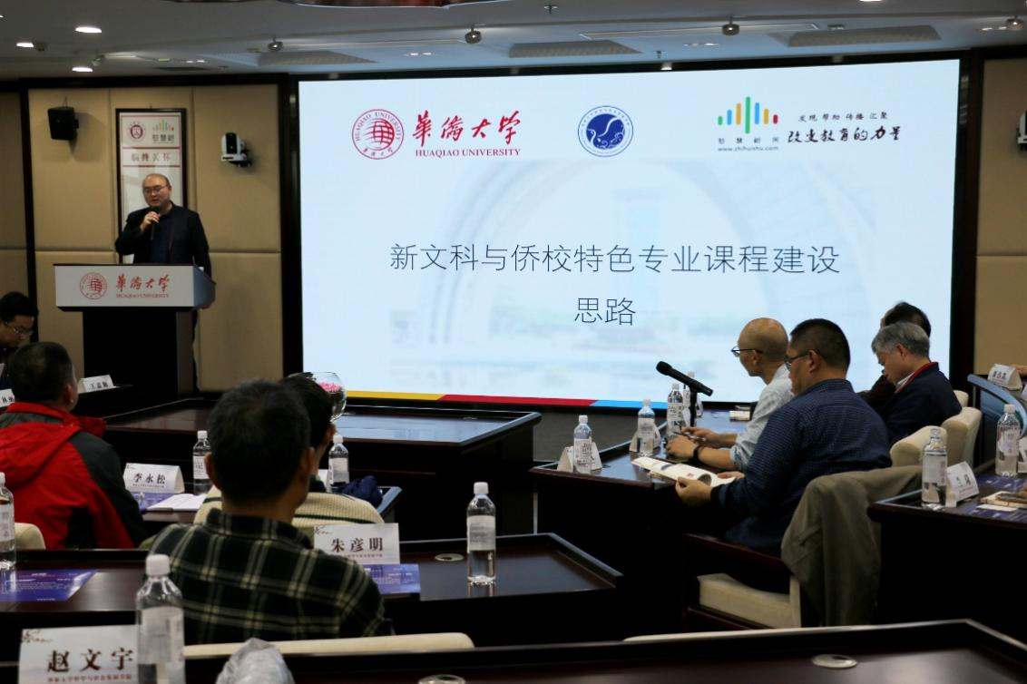 许德慜经理做了关于“新文科与侨校特色专业课程建设思路”的主题发言。他从目前教学课程改革和利用现代智慧教学工具相结合的宏观视野和思路,对于着眼打造“新文科”体系下的侨校特色的专业课程改革路径与方法做了分析。对哲学专业课程改革的方法步骤提出了一些建议,认为可以通过线上线下优质课程整合,运用“智慧树”平台集中优质资源将新文科背景下的哲学课程建设工作做好、做精。