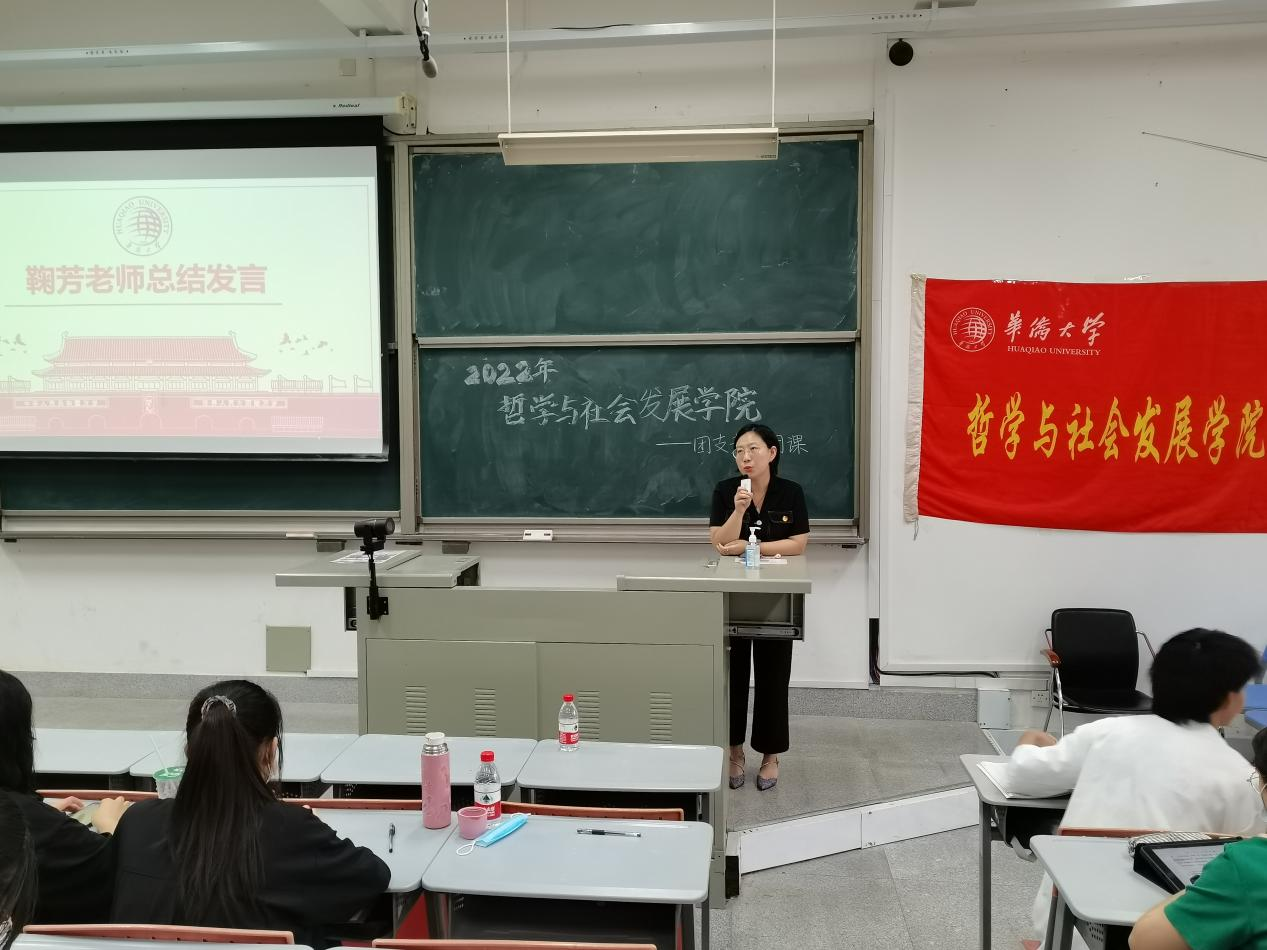 鞠芳对此次活动进行了点评。她鼓励学院同学提高主动性,争取评选校级优秀团课。她表示,团员应当对党忠诚,重视团支部活动,珍视团员身份,展现青年活力。经过激烈角逐,21级哲硕卢希婷、19级社会学任玺燃、19级哲学沈嘉馨取得此次活动前三名。