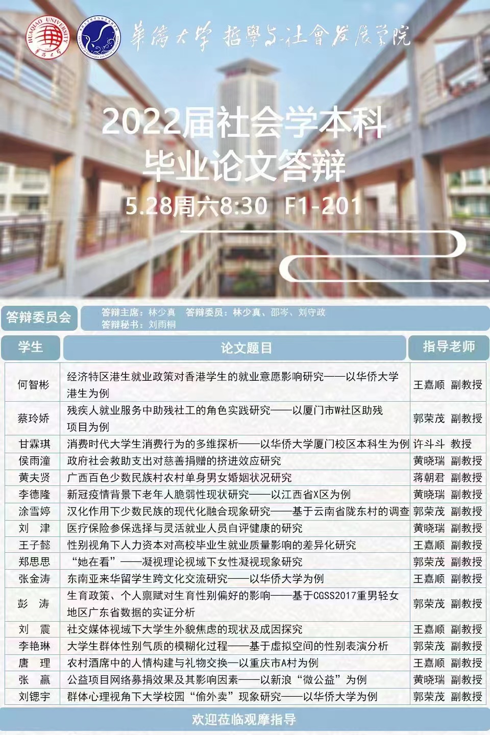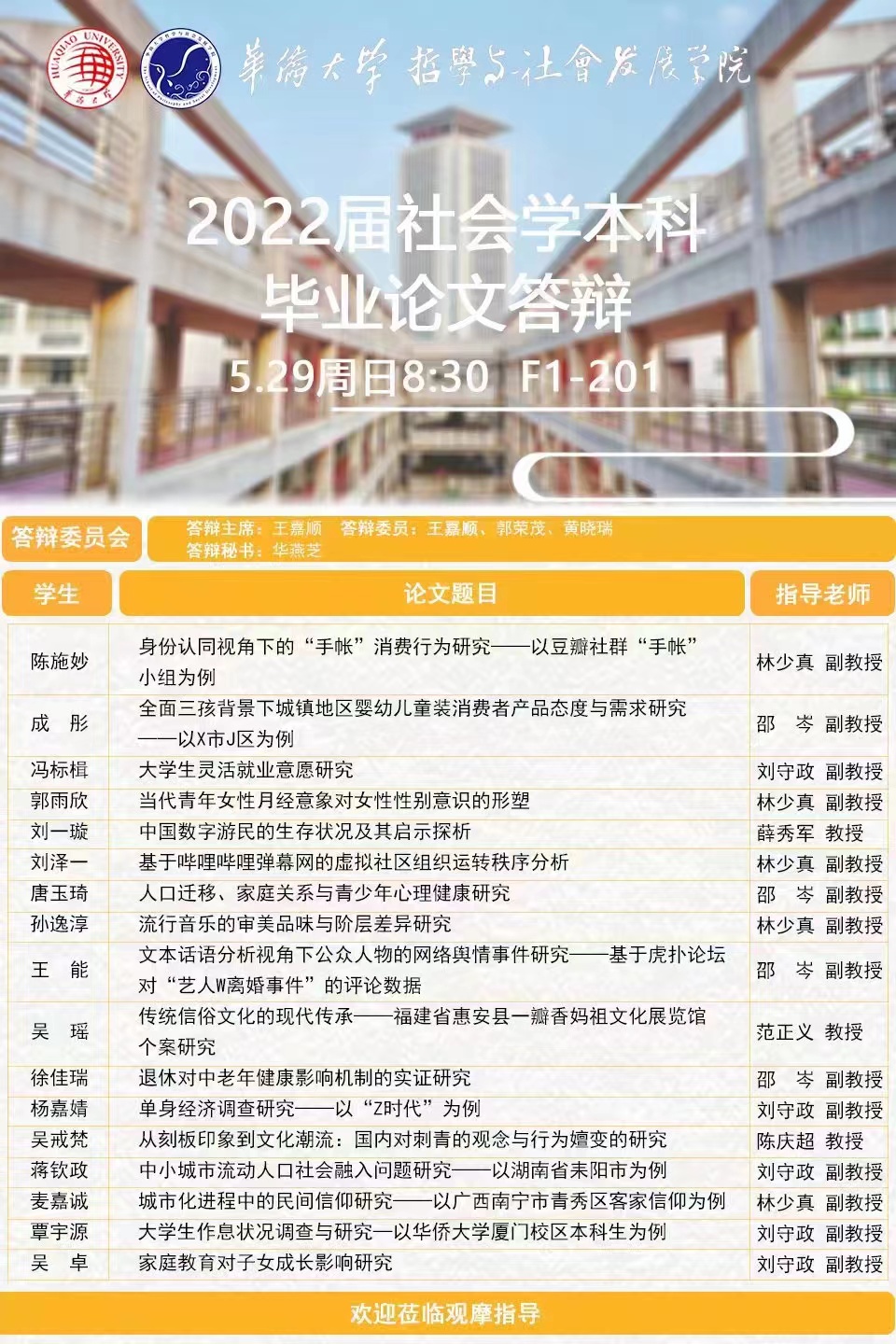 答辩预告 | 永利集团2022届社会学本科毕业论文答辩会