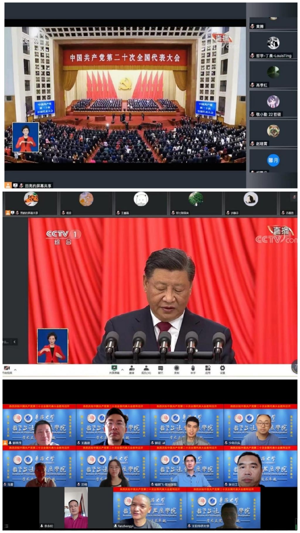 2022年10月16日上午10时,哲社学院全体师生以线上腾讯会议、线下组织集中观看等形式,共同观看中国共产党第二十次全国代表大会开幕会,师生纷纷表示受益匪浅,备受鼓舞。