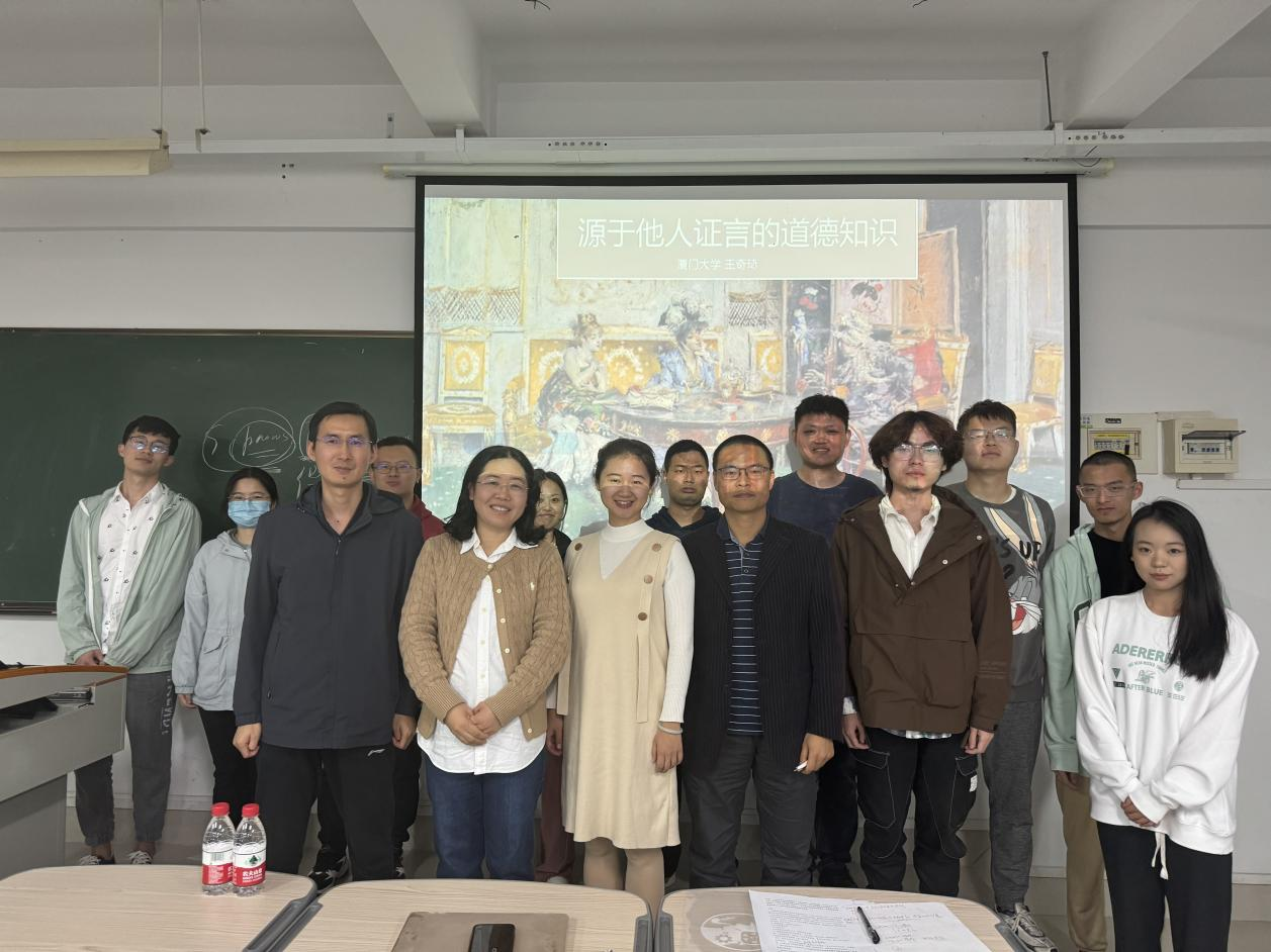 2023年12月4日下午,厦门大学马克思主义学院副教授、厦门大学认识论与认知科学研究中心副主任王奇琦老师为我院师生带来题为“源于他人证言的道德知识”的学术讲座。本次讲座由魏燕侠教授主持,喻郭飞副教授点评,陈庆超教授参与讨论,包括我院研究生、本科生在内的20余人参与。