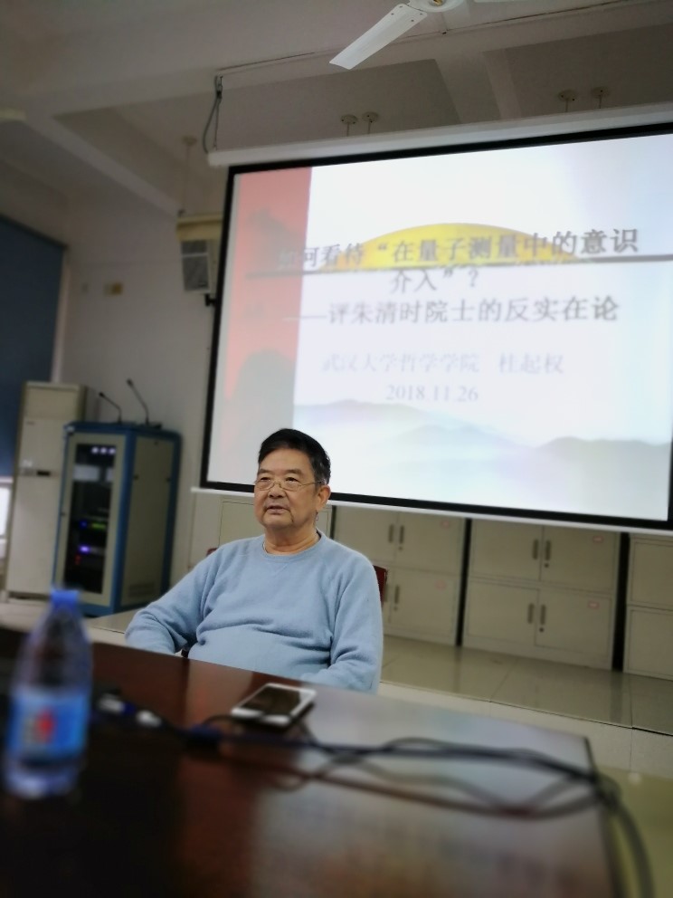 2018年11月26日上午,武汉大学哲学学院桂起权教授应yl9193永利集团和问题哲学研究中心邀请,作了一场题为“如何看待‘在量子测量中的意识介入’?——评朱清时院士的反实在论”的学术讲座。讲座由马雷教授主持,哲社学院部分师生聆听了讲座。