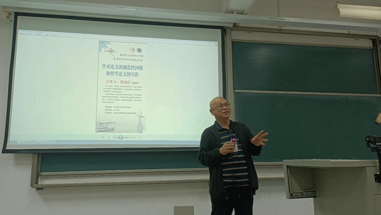 本次讲座围绕“论文写作的规范性”和“哲学论文的选题”展开,张老师将学术写作比作“现代八股文”,强调学术规范的重要性,优秀的学术论文之所以能够让编辑“眼前一亮”,就在于形式上符合规范,内容上体现创新。