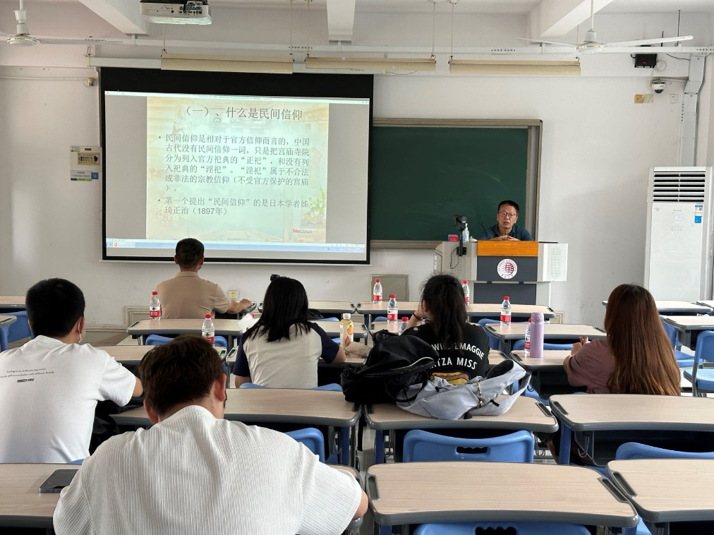 2023年5月17日下午15:00—17:00,福建师范大学社会历史学院博士生导师、教授林国平应邀为我院师生做“民间信仰·闽台民间信仰·闽台民间信仰研究”的专题讲座。本次讲座在永利集团厦门校区F2-304举行,我院范正义教授主持,宗教学、中国哲学研究生及部分哲学本科生聆听了本次讲座。