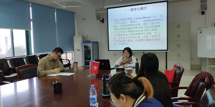 改革开放以来,全国范围内的民间信仰复兴,神庙得到重建,神像也被重新雕塑供奉。张珣以湄洲岛的巨型妈祖立像为例,认为它展现出妈祖信仰对城市规划美学与现代普世博爱精神的宣扬,同时发生着由“封建”“迷信”到“民俗”“旅游”“文化产业”“国家形象”等的蜕变。此一立像造型引起华南华北沿海各省与海内外各地妈祖庙的争相挪用与模仿,结果不止牵涉到了艺术造型的挪用,还涉及到信徒、庙方、工匠等各方的互相协调。张珣研究员引用华琛(James Waston)的标准化理论对此加以说明。同时,张珣研究员还认为,宗教与身体经验的理论可以与神像造型在视觉上引导信徒认同的观点相对应。所以张研究员看到了国家进行宗教标准化的过程中文本资料与神像造型的同等重要性。通过神像造型的挪用,能够看到国家并非是单一的操纵方,还须有民间社会的主动附会、挪用模仿,并经过时间的推移,最终达到整体宗教文化的协调统一。讲座结束后,张珣研究员与在场师生进行了深入的讨论和交流。