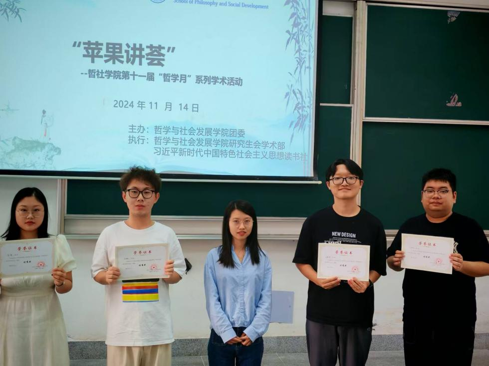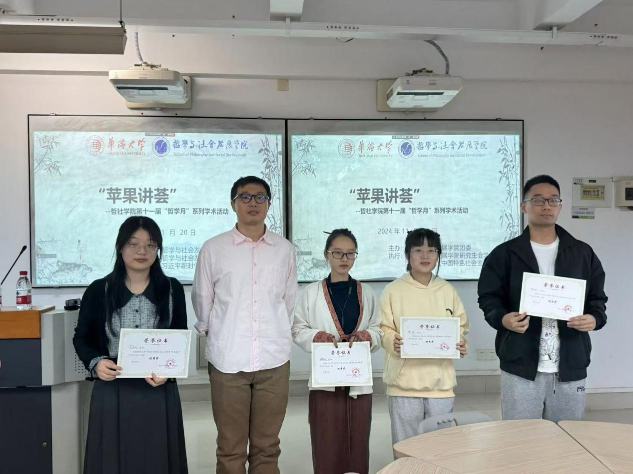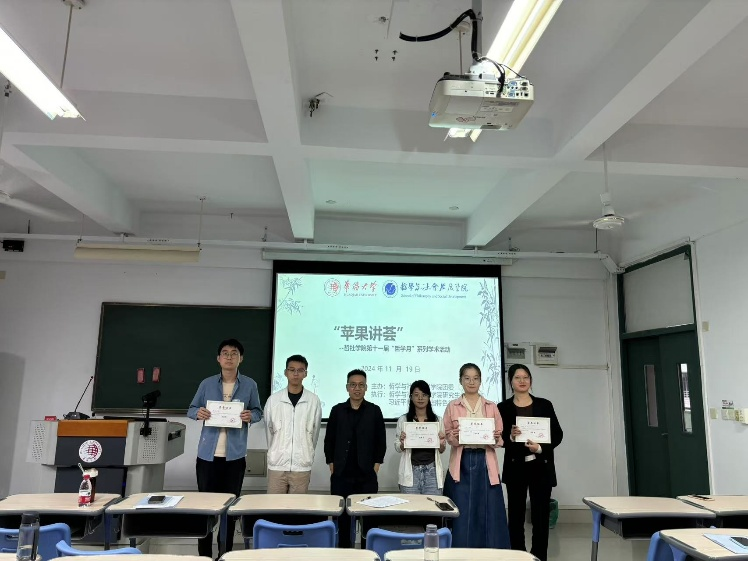经过评议老师们的谨慎评选,活动最终决出了赖美伶、孙晓龙、曹毅和邱泽圣同学为本次比赛的优胜奖,其余同学为优秀奖。我们期待下一次的“苹果讲荟”给我们带来高水平和高质量的学术汇报。本次活动在同学们的掌声中落下帷幕。