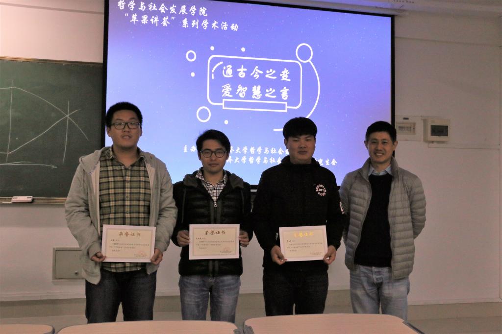哲学的另一个名称是“爱智慧”,哲思明辨,“究天人之际,通古今之变”,作为一个有理性的个体,将启蒙自身变为一种自觉,是必要且长期的。学术研究能力是研究生基本素质要求,如何把握当代学术动态、紧跟学术前沿,积极探究学术问题、敢于善于发问思考,形成并交流学术成果,是研究生学术研究能力能否迅速提升的主要方面。本学期开展“苹果讲荟”学术交流活动,为广泛热爱哲学、勤于思考的青年学生提供平台,汇聚各方名家,集百家之言,博采众长,让学生第一时间近距离接触哲学界名家,让师生之间更加亲密交流,让学生与学生之间良性竞争,碰撞思维火花。