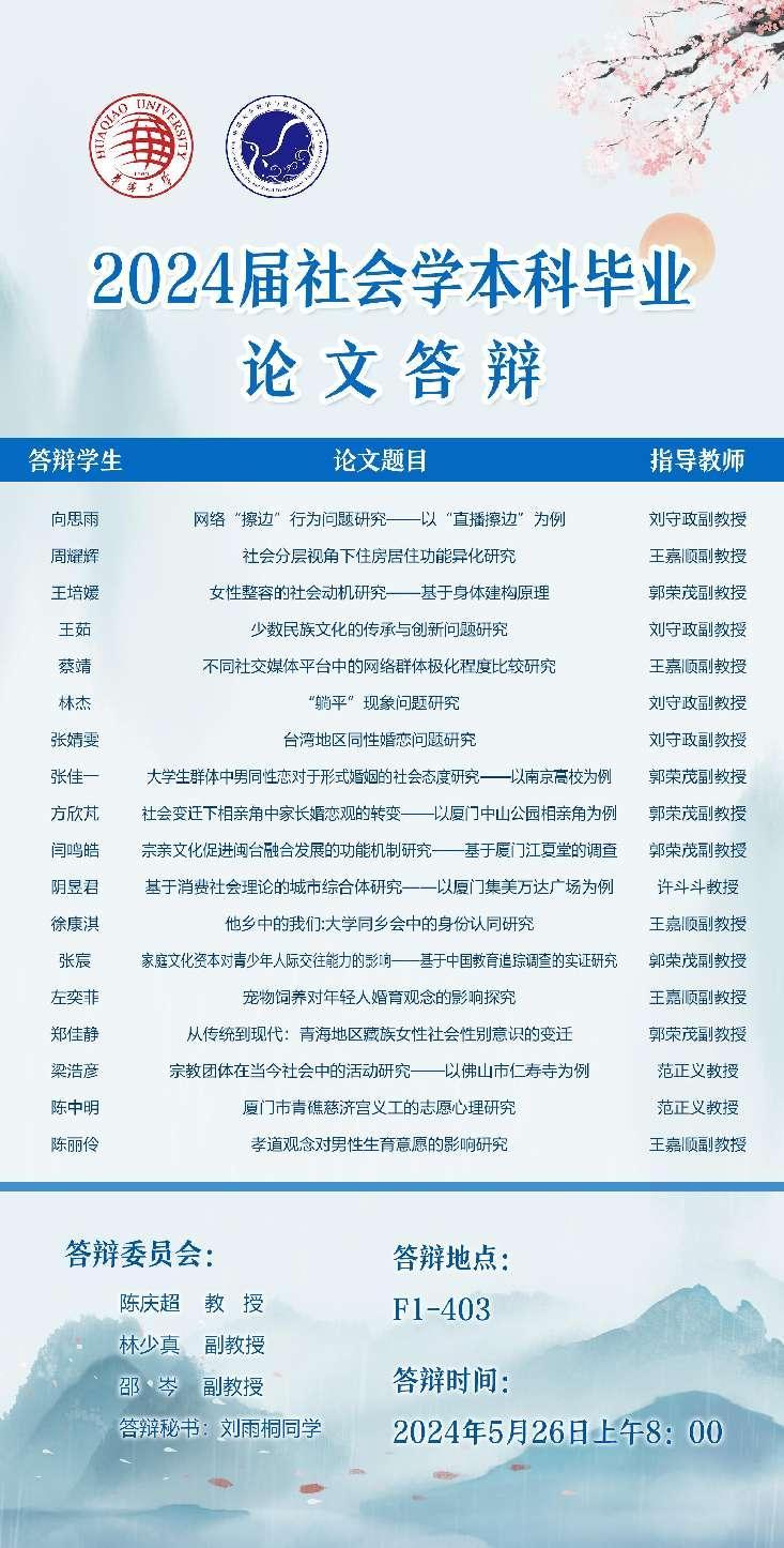 2024届社会学本科毕业论文答辩