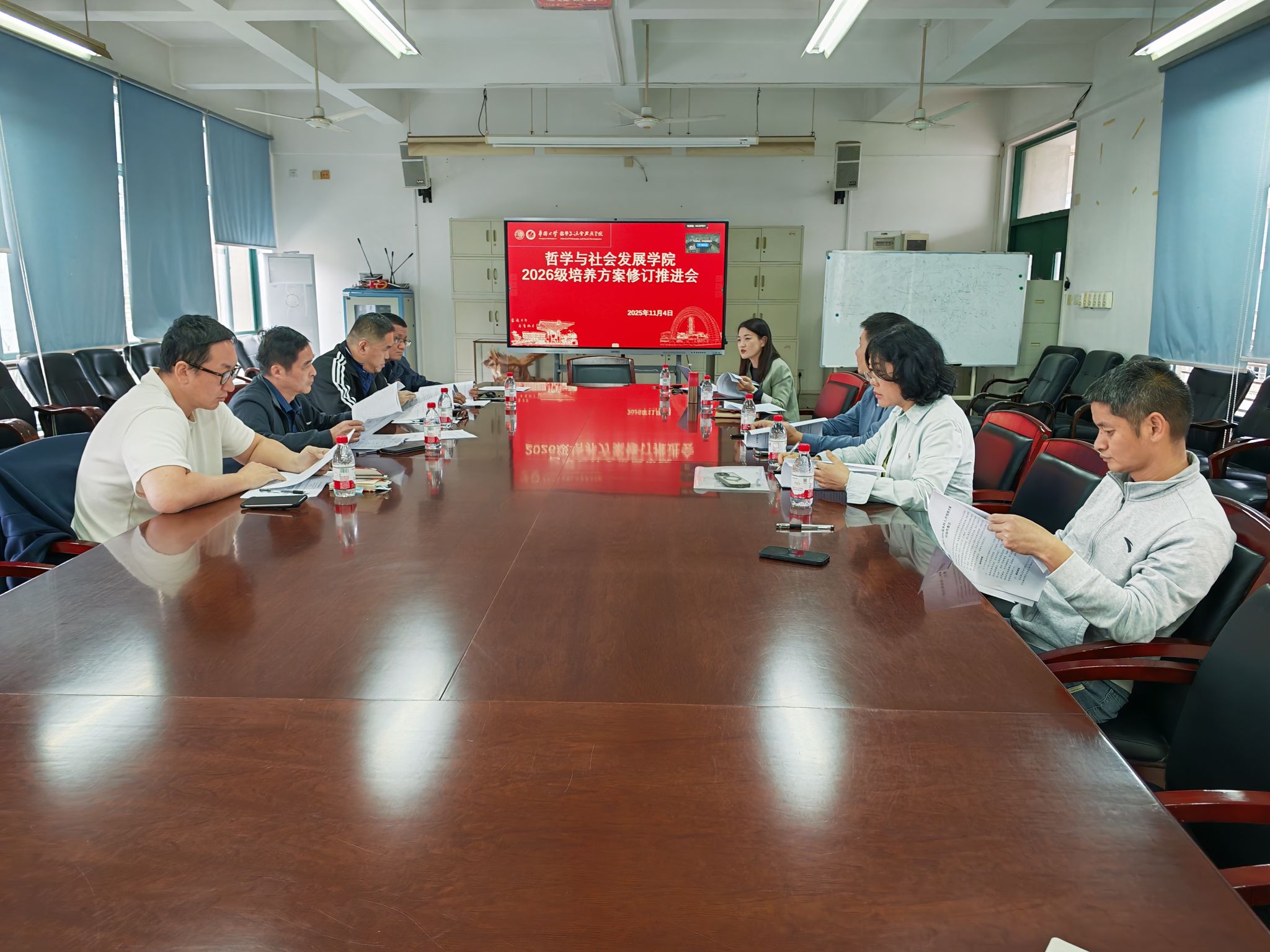 为进一步贯彻落实新时代高等教育高质量发展的要求,深化教育教学改革,提升人才培养质量,哲社学院于11月4日在F1-401会议室召开了“2026级本科生培养方案修订推进会”。会议由副院长薛子燕主持,学院领导、本科生教学工作指导委员会及各教研室负责人出席了本次会议。