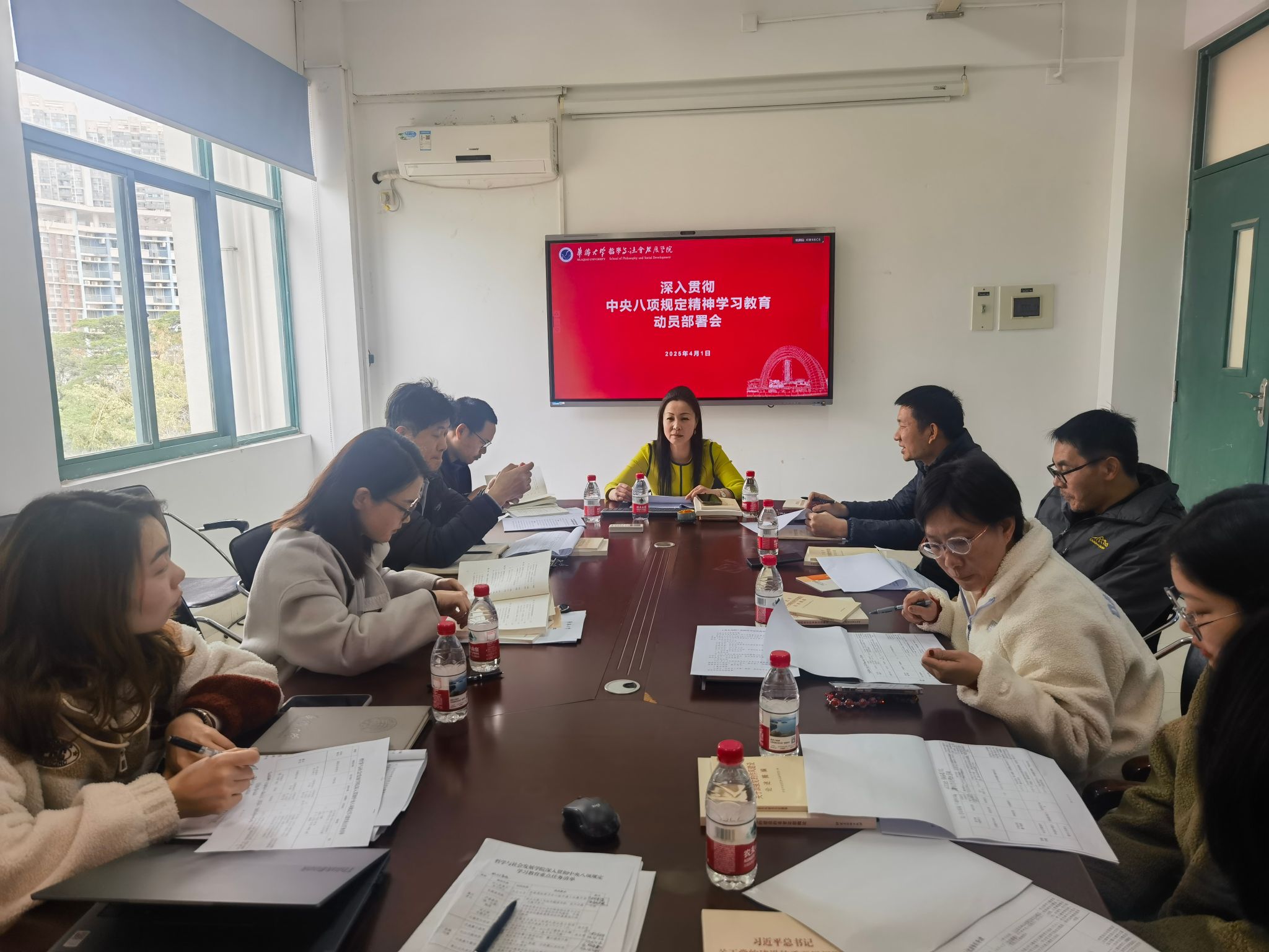 4月1日上午,哲社学院党委在F4-405会议室召开深入贯彻中央八项规定精神学习教育动员部署会。学院领导班子、党委委员、党支部书记参加会议。会议由党委书记、副院长叶荔辉主持。