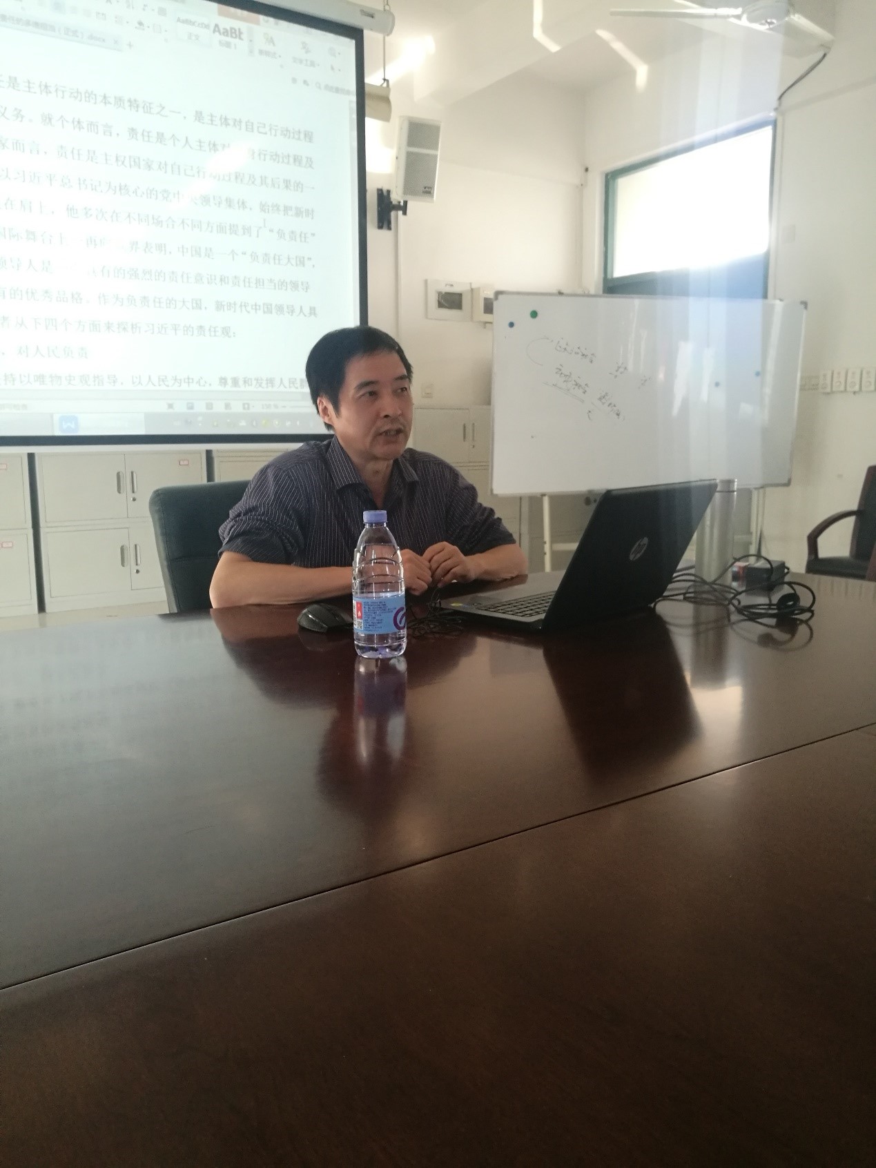 最后,许斗斗还补充道,中国责任不是牺牲自身发展的机会和利益,而是在力所能及的范围内为世界人民尤其是非洲发展中国家贡献自己的智慧和能力,量力而行是中国责任的定位和反思。许斗斗还特别提示在座的同学在学习习近平新时代中国特色社会主义思想中应该认真思考和领会党中央的新思想新理论,讲好中国故事。通过这次理论学习,同学们受益匪浅。