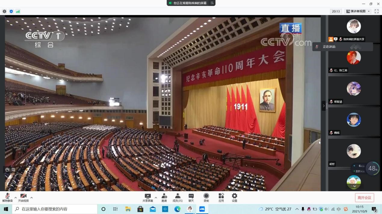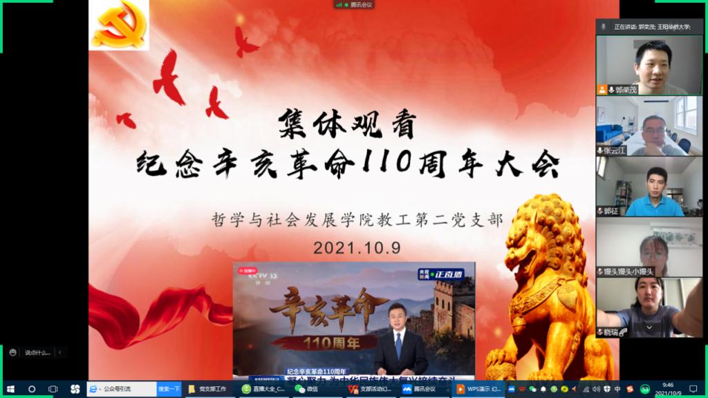 为响应学校党委号召,深入学习辛亥革命的伟大意义,理解党史和辛亥革命史的有机结合。10月9日上午,yl9193永利集团以线上集体观看纪念辛亥革命110周年纪念大会的形式,组织党委理论中心组会议暨党史学习教育学习。学院党委理论学习中心组全体成员、辅导员、学院党委各支部全体成员一同参与学习。