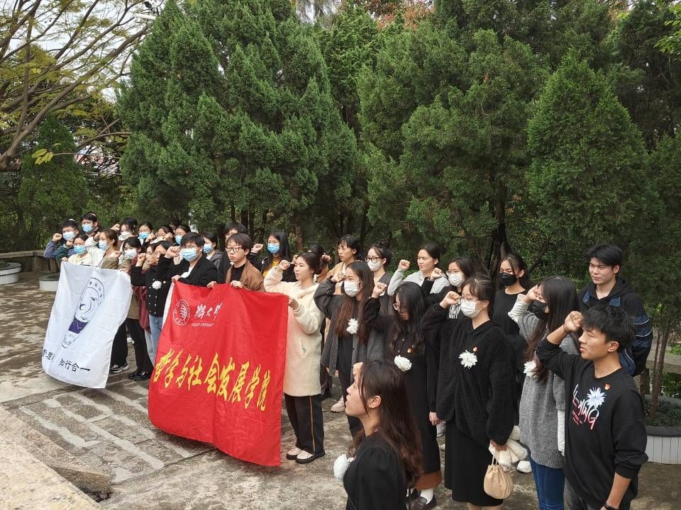 首先,主持人致辞,宣布祭扫仪式开始,各学院学生代表向烈士进献花束,全体肃立,向革命先烈默哀一分钟。随后,哲社学院研一支部代表赵凡琦、研二支部代表谌佳楠、本一支部代表陈湘洁、统计学院支部代表苗子岩分别致悼词,告诫新时代大学生勿忘国耻,在和平时期仍应继承和弘扬老一辈革命家和先烈们舍己为国的精神。接着,各学院预备党员在哲社学院陈晓燕的带领下,在烈士纪念碑前进行庄严地入党宣誓。最后,同学们近前瞻仰纪念碑,表达自己对革命先烈的缅怀和追思。