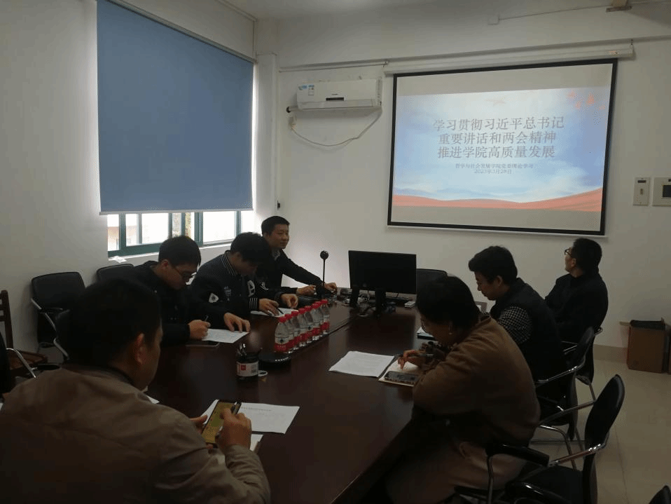为学习贯彻全国“两会”精神,推进学院高质量发展,2023年3月28日上午,哲社学院党委理论学习中心组召开理论学习会,会议由党委书记李永松主讲,党委理论中心组全体成员参加。
