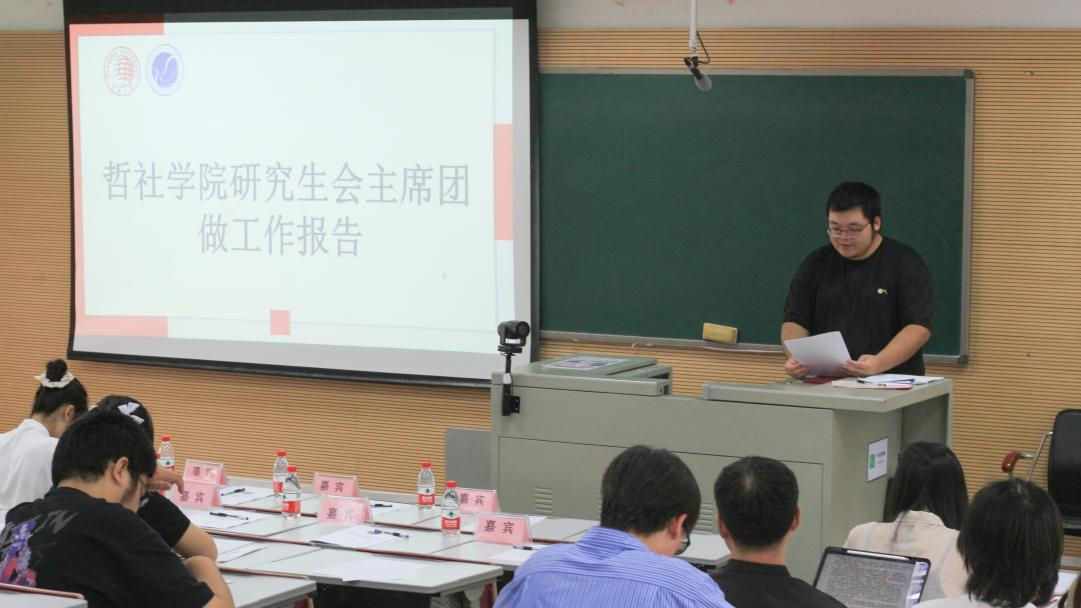 2023年6月16日,哲社学院第十六届研究生代表大会在F5-102教室胜利召开。会议由第十五届主席团成员杨奕主持,哲社学院党委书记李永松,团委书记鞠芳出席会议,校研会、土木、机电学院代表、第十五届研究生会全体成员、各研究生班级代表与会。