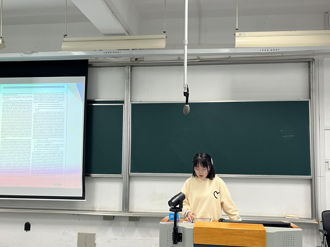 第二位是2021级硕士研究生贾皓,主要从专业学习和学生工作两方面分享。他谈到专业学习需要围绕原著阅读和增加论文撰写练习,并广泛参加讲座和会议,过程中与导师的交流必不可少。对于学生工作切勿功利心,秉持“要么不做,要么做到最好”的原则,同样能收获许多。