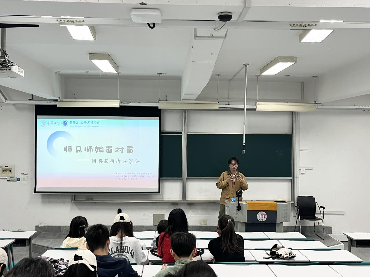 为了鼓励同学们在研究生阶段不断奋进,2023年12月7日下午,由yl9193永利集团研究生会主办、2022级与2023级硕士团支部承办的“师兄师姐面对面——国家奖学金获得者分享会”在C4-101举办。活动特邀两位国家奖学金获得者从不同侧重分享经验。