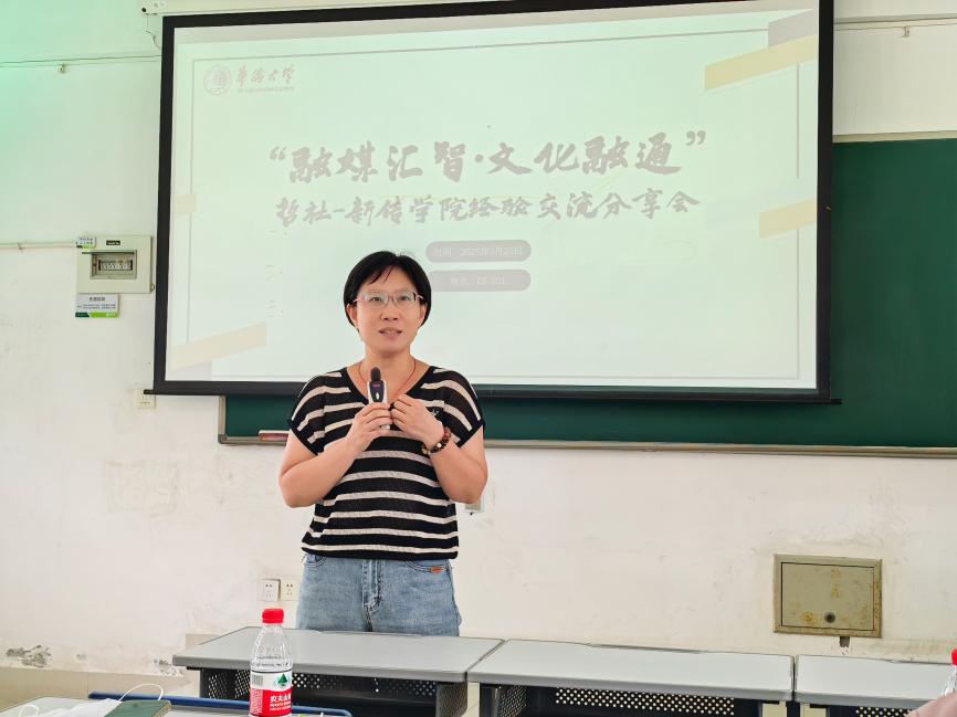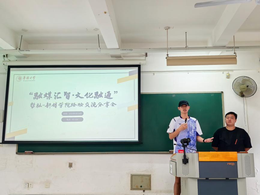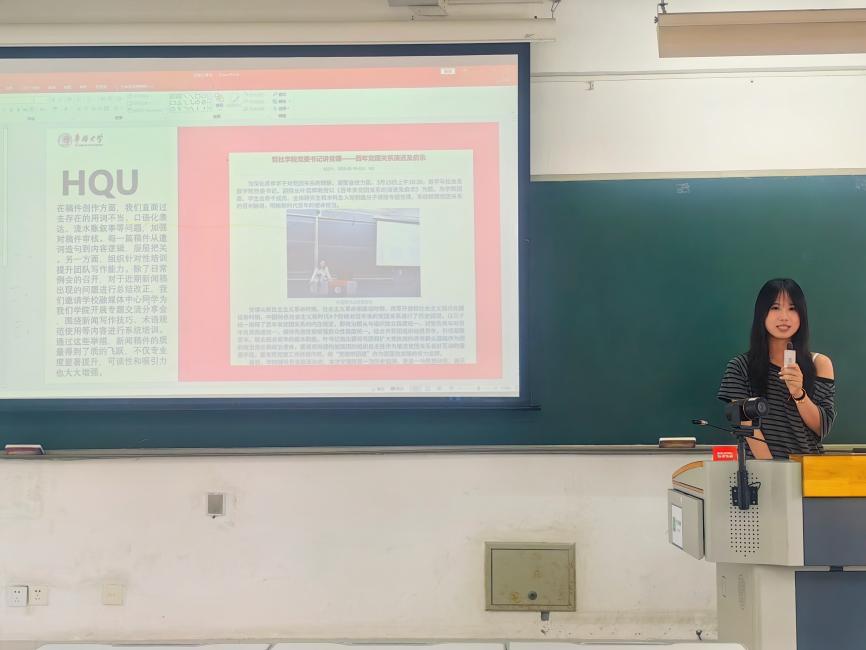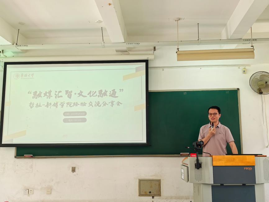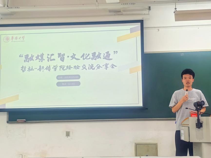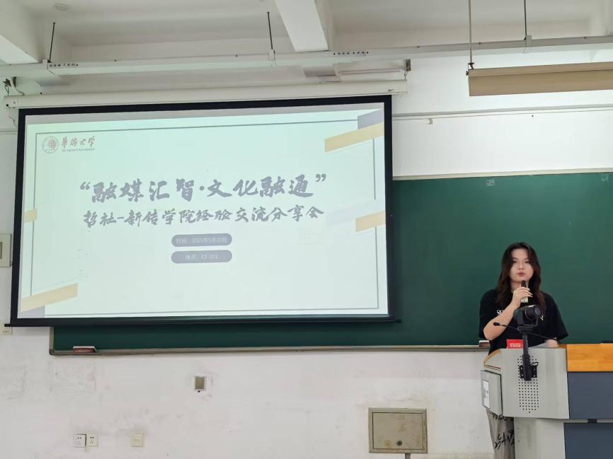 哲社学院代表则分享了学术宣传的特色做法:青协部负责人曾晗介绍了中华文化海外传播宣讲团的工作成效,并就新媒体传播策略提出思考;新闻中心负责人郑学颖重点分享了“云盘管理+宣传提质”的驱动模式。