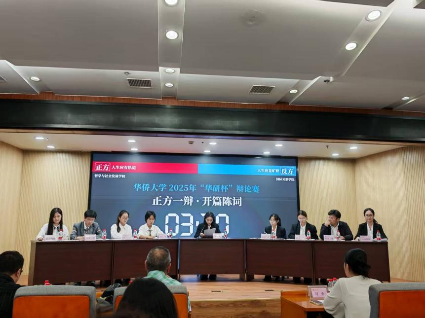11月23日下午16:00,华侨大学2025“华研杯”辩论赛决赛在G101举行。决赛辩题以“人生应有轨道还是人生是旷野”展开。