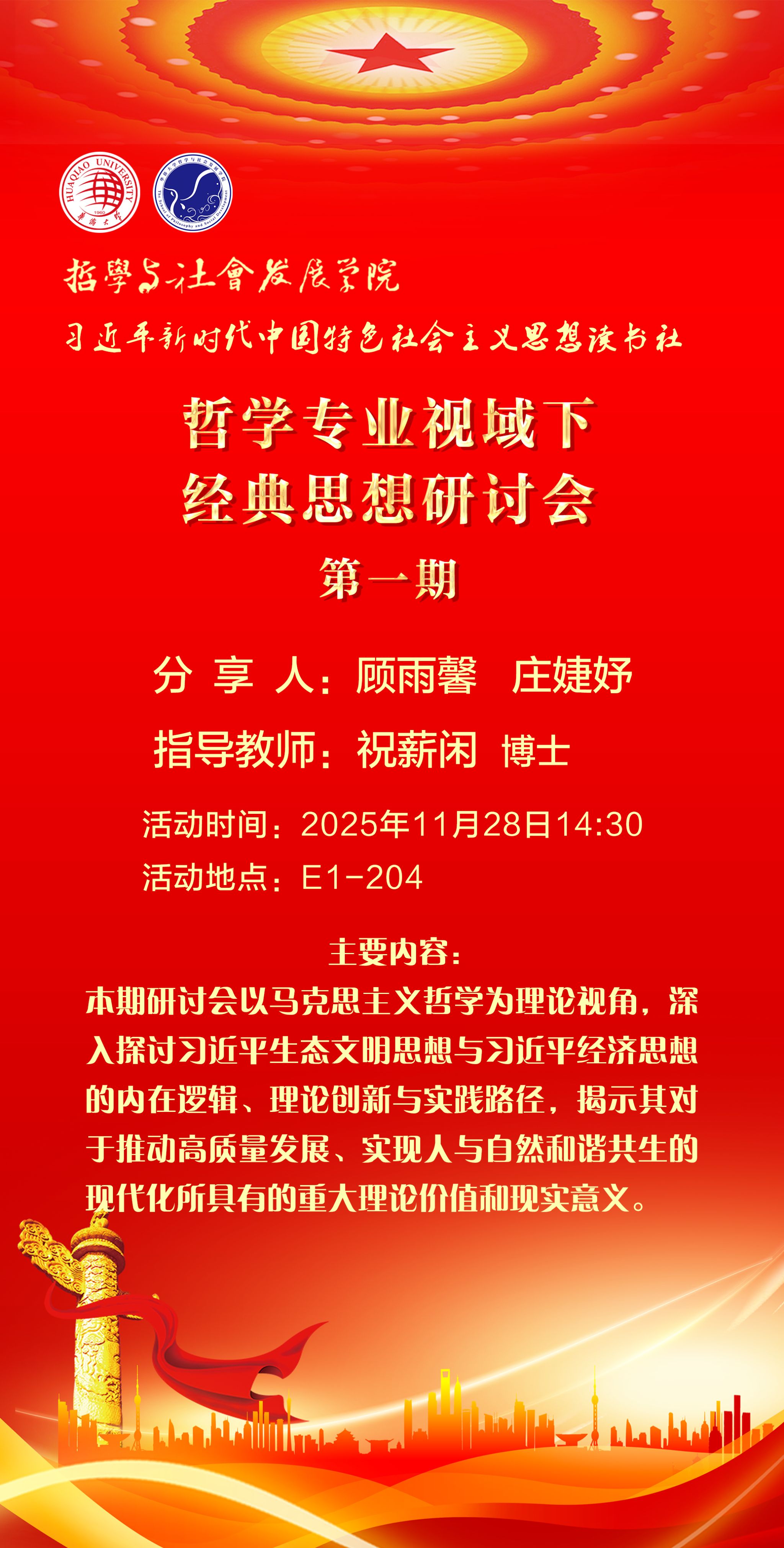 【研讨会预告】哲学专业视域下经典思想研讨会第一期