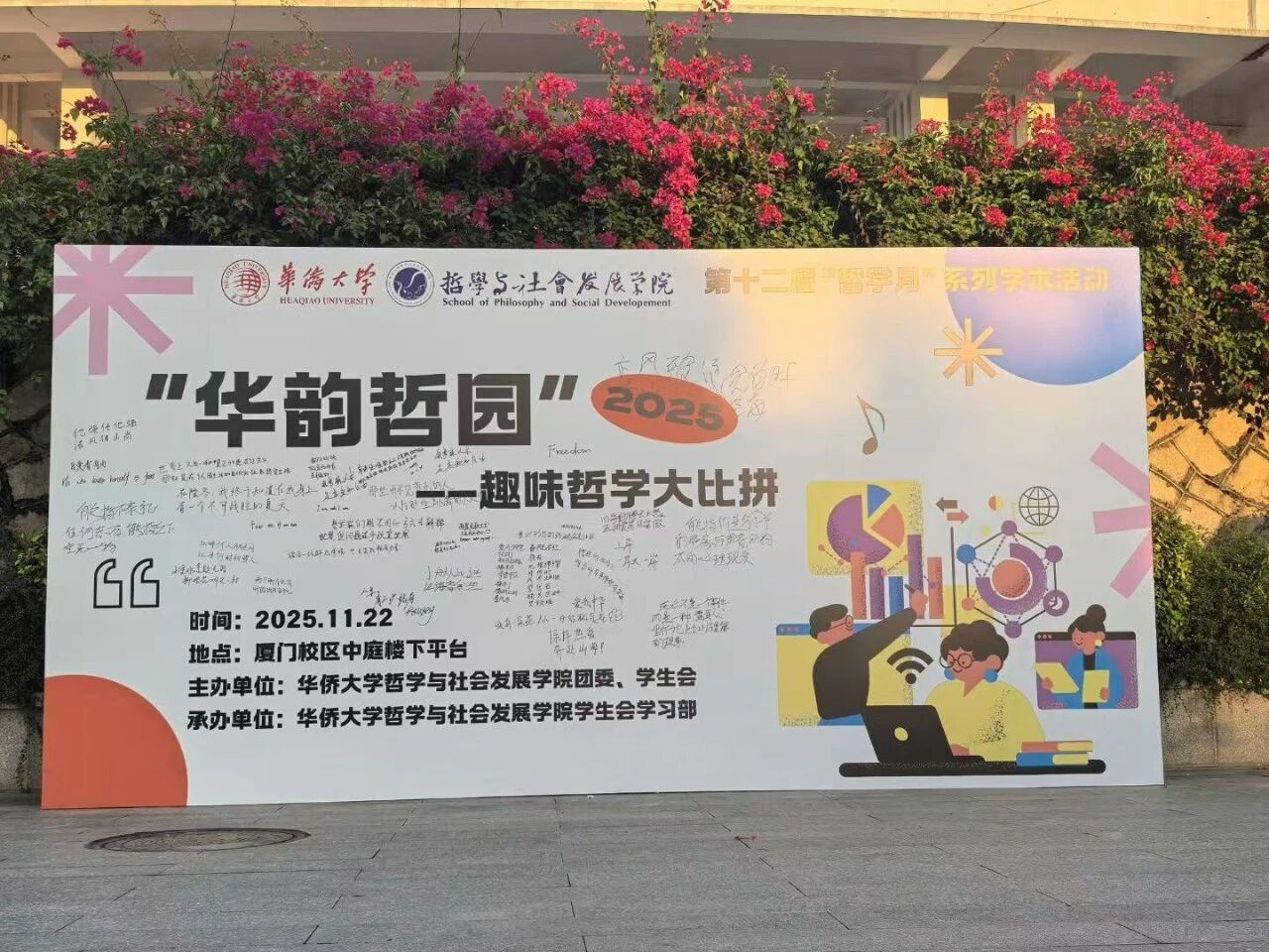当深奥的哲学遇上趣味的游戏,会碰撞出怎样的火花?2025年11月22日,yl9193永利集团第十二届“哲学月"活动——“华韵哲园”趣味哲学大比拼在厦门校区中庭精彩上演!本次活动由yl9193永利集团团委、学生会主办,学生会学习部承办,为同学们带来了一场别开生面的哲学嘉年华。