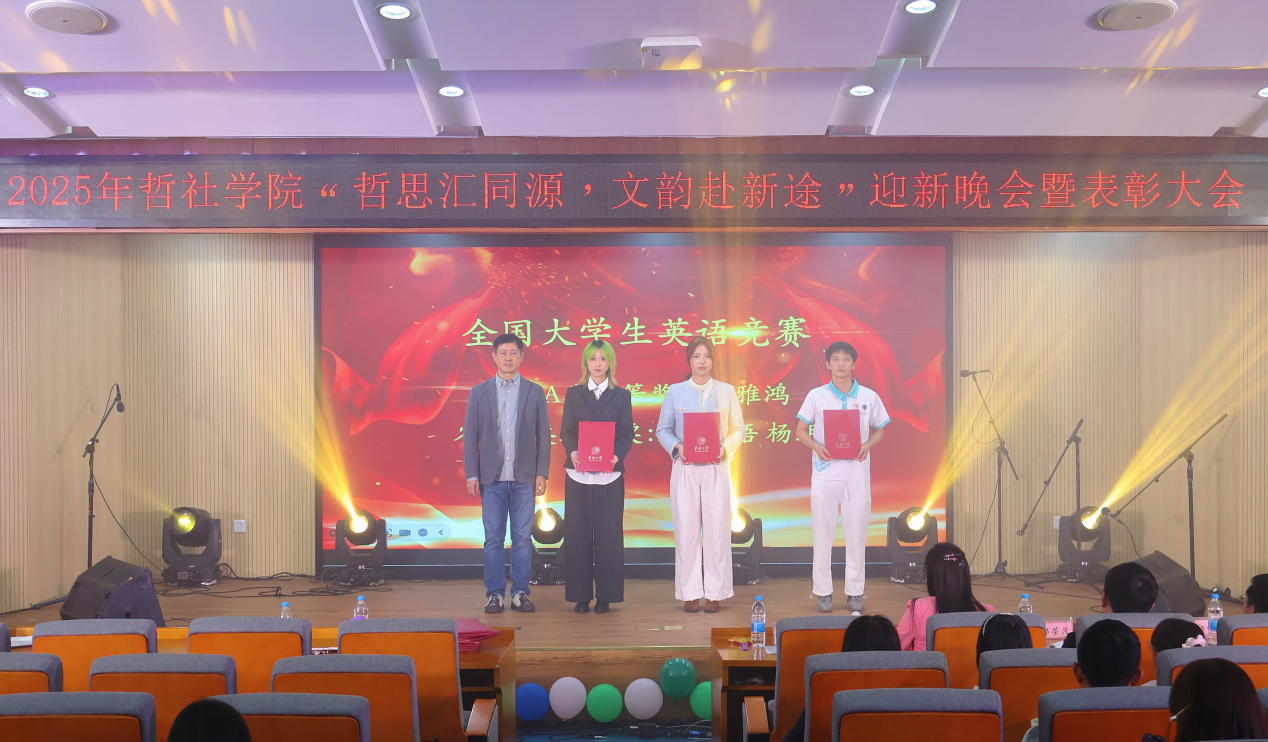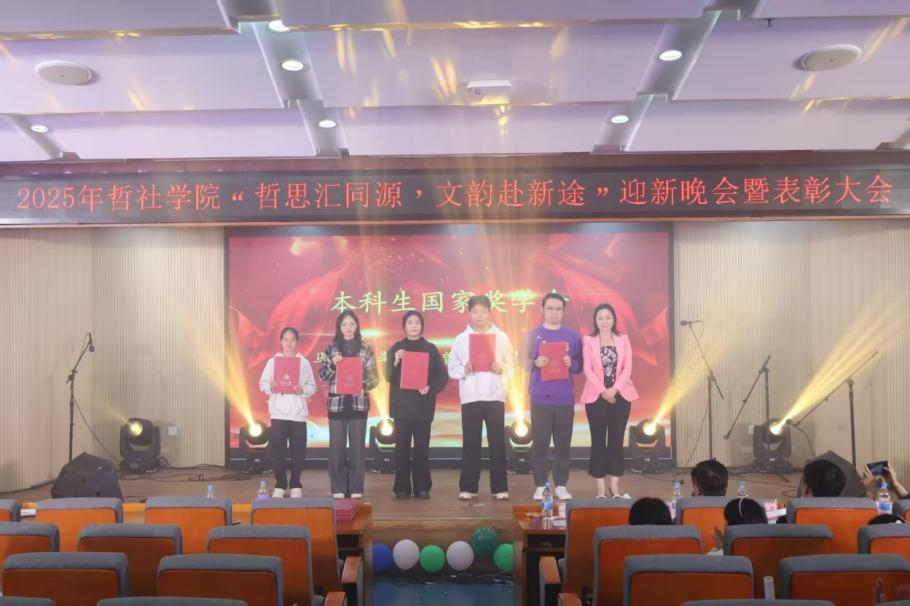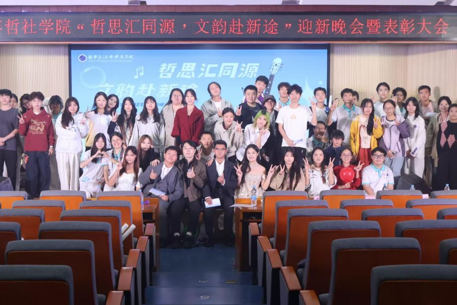 2025年11月30日,哲社学院2025年“哲思汇同源,文韵赴新途”迎新晚会暨表彰大会于19:00在王源兴国际会议中心G101成功举办。本次活动旨在欢迎新生加入哲社大家庭并对过去一年表现优异和做出杰出贡献的学生进行表彰,携手共进,赋能未来。