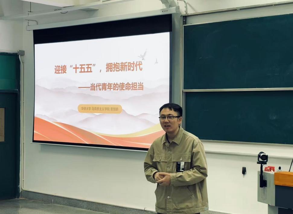 讲座中,董慧鹏老师以学习贯彻中国共产党第二十届中央委员会第四次全体会议精神为主题,系统梳理了“十四五”时期国家发展的辉煌成就,并重点解读了全会关于未来一段时期国家发展,特别是谋划“十五五”经济社会发展的战略部署和核心要求。他结合当前国内外发展形势,深刻阐释了在百年未有之大变局下贯彻全会精神、把握历史主动的重要性,引导同学们深刻理解时代赋予青年的使命与担当。