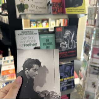 当我们在哲学系门前举起交流项目的横幅合影时,仿佛能“听见”先贤们激烈思辨的回响。主楼前的歌德雕像默立在疏枝下,“我把心遗失在海德堡”这句喟叹,恰是对此地人文氛围最贴切的注脚。哲学系对面的书店里,汉娜·阿伦特的著作摆满了整面书架,书店老板激动地与我聊起这位哲学家。在她逝世几十年后,其思想并未沉寂,海德堡大学仍常举办关于她的专题演讲,极权主义与个体思考等深刻命题,始终在课堂与公共讨论中保持着活跃。