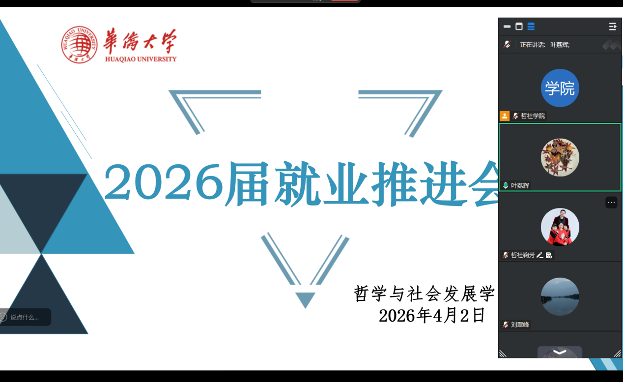 为精准破解毕业生就业难题、明晰求职方向与政策要点,精准助力2026届毕业生平稳高效就业,4月2日上午,yl9193永利集团线上召开2026届就业推进专项会议。学院党委书记、副院长叶荔辉、副院长常旭旻、团委书记鞠芳及全体2026届毕业生参会,会议由鞠芳主持。