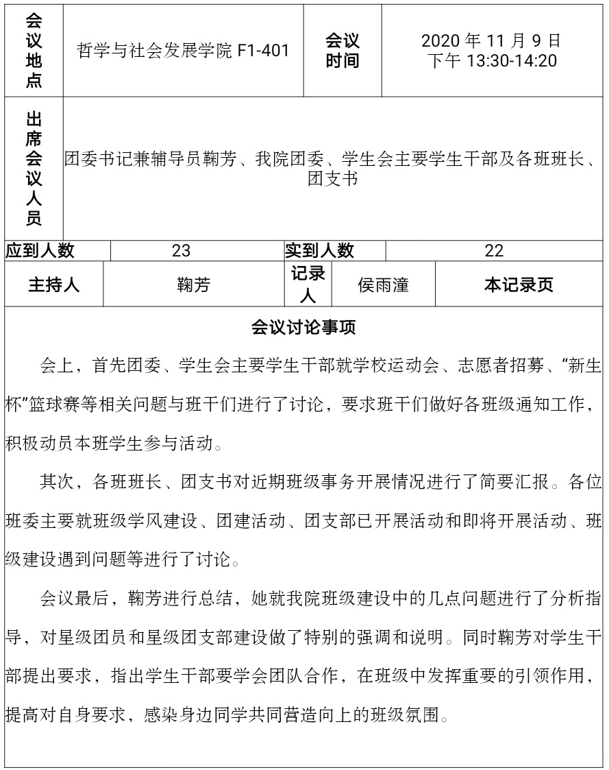 哲社学院2020-2021学年第一学期班长、团支书例会