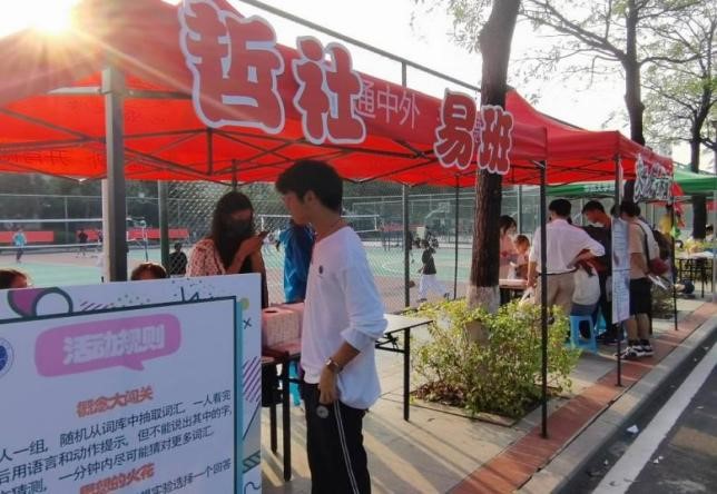 在哲社学院易班学生工作站全体成员的共同努力下,活动顺利开展。摊点设置了“概念大闯关”、“思想的火花”与“现学现卖”三个游戏,具体为猜词、回答哲学思想实验与用现学的社会学思维模式来分析社会现象。游戏内容极具特色,生动丰富——不仅包含了颇具哲社特点的知识库,趣味性十足,还真正做到了学习与欢乐两不误。在参与者进行猜词,描述名词等游戏并取得一定成果后,便可以获得相应的丰富奖品——盲盒,笔记本,书籍等,让各位同学满怀期待地来,心满意足地走。