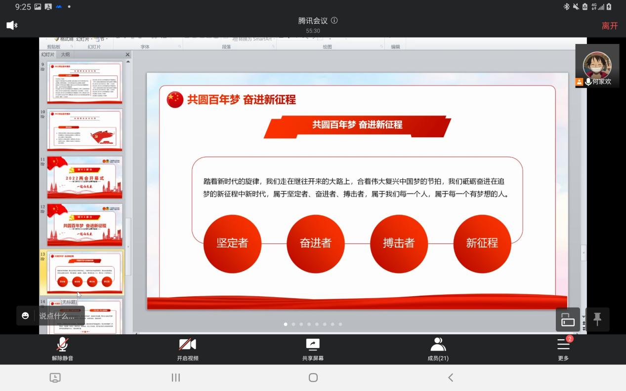 为深化对“两会”精神的理解和体悟,2022年3月8日,yl9193永利集团团委、学生会与研究生会全体学生骨干成员于腾讯会议收看了第十三届全国人民代表大会第五次会议开幕式,并就政府工作报告进行了学习与研讨。