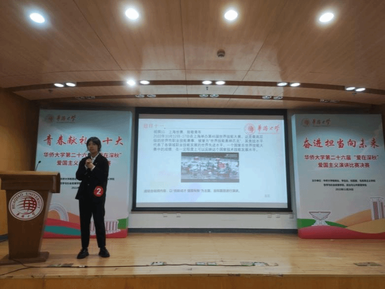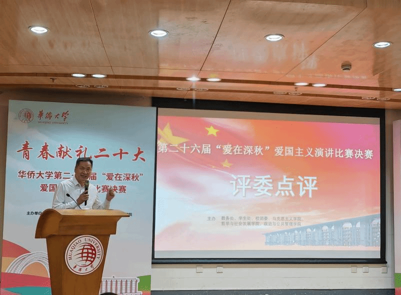 经过预赛的选拔,共有十六名选手晋级决赛。比赛伊始,由副校长王丽霞致辞,她表达了对参赛选手的祝福以及肯定,希望有更多的华大学子参与到以爱国主义为核心的活动中。随后,比赛正式开始,在演讲的过程中,每位选手都用出色的语言表达了对中国未来发展的无限期许,对党和人民的无限热爱,展现了新时代青年应有的朝气与奋发向上的姿态。最后,由集美大学的肖仕平教授进行了点评,他高度赞扬了选手们的整体素质以及对比赛的精心准备和重视程度,并且表达了对华大学子爱国主义氛围的肯定,希望这样的氛围可以继续保持。经过激烈角逐,我院刘珈辰同学荣获三等奖。