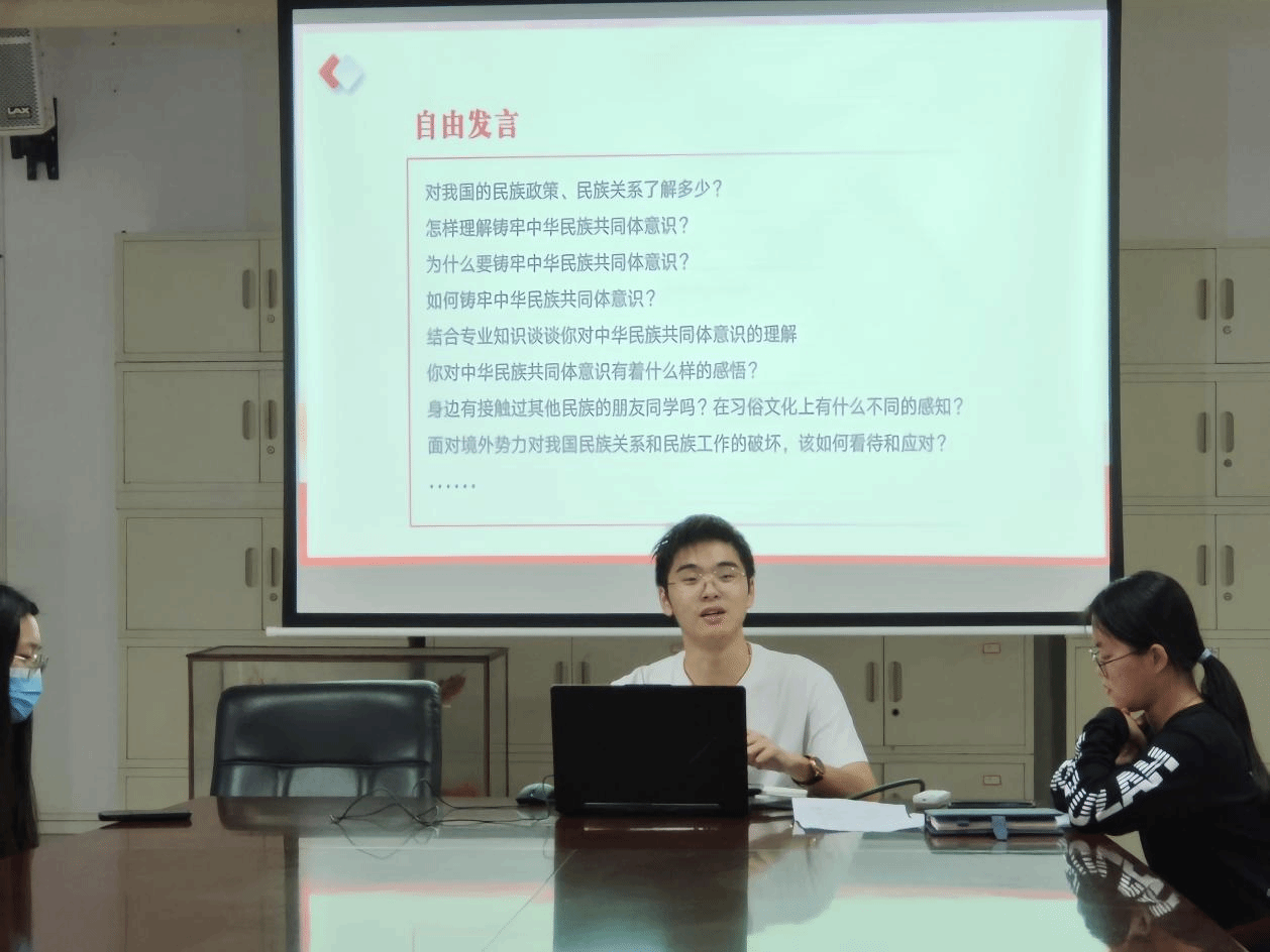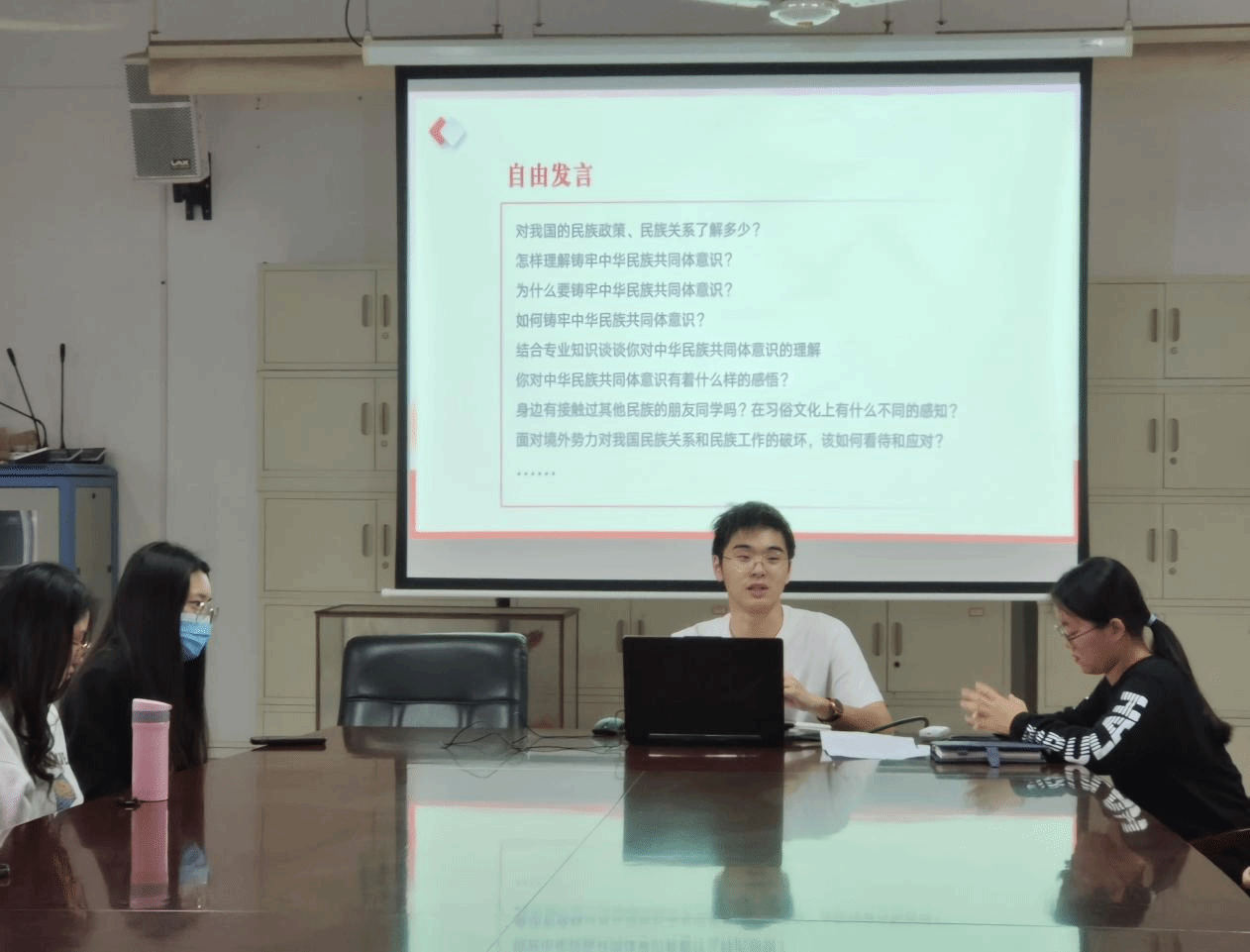 首先,参会人员学习习近平总书记关于中华民族共同体意识的讲话精神,以及把铸牢中华民族共同体意识贯彻在工作中的实践方法。然后各个部门负责人踊跃发言,结合自身经历分享自己的学习体会,就为什么要铸牢中华民族共同体意识、如何铸牢中华民族共同体意识、如何看待和应对境外势力对我国民族关系和民族工作的破坏等一系列问题发表观点和见解。最后,辅导员苏清兰老师对本次理论学习会做了总结,指出大学生作为社会主义建设者和接班人,尤其身为学生干部更应该铸牢中华民族共同体意识,并从四个方面给出了建议。
