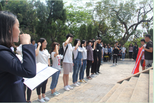 2018年4月4日中午13点,哲社学院、统计学院、厦航学院全体学生党员、入党积极分子徒步前往兑山村烈士陵园,缅怀先烈。祭扫仪式由学生代表乔轩主持。
