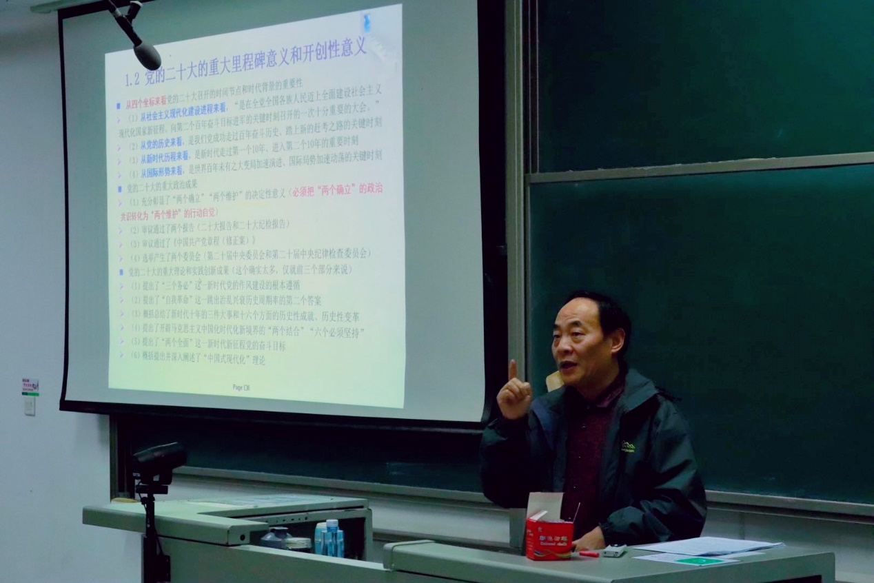 2023年3月30日晚,哲社学院刘荣军教授应习近平新时代中国特色社会主义思想读书社邀请,于F4-101主讲“以中国式现代化推进强国建设、民族复兴”主题讲座,读书社社员以及哲社学院本科生团学干部等近百人参与学习。