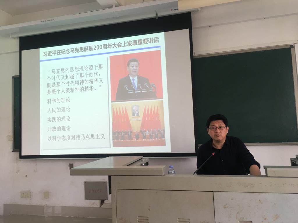 3月28日下午三点,yl9193永利集团党委书记薛秀军在D2-203为2016级社会学班和2017级哲学班的全体同学讲授了题为《世界百年未有大变局中的中国方案——2019“两会”精神学习汇报》的思想政治理论课。