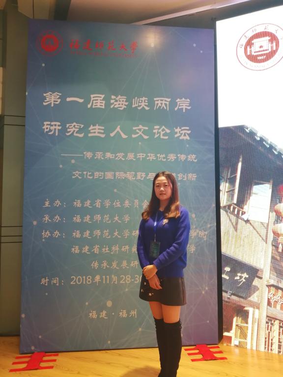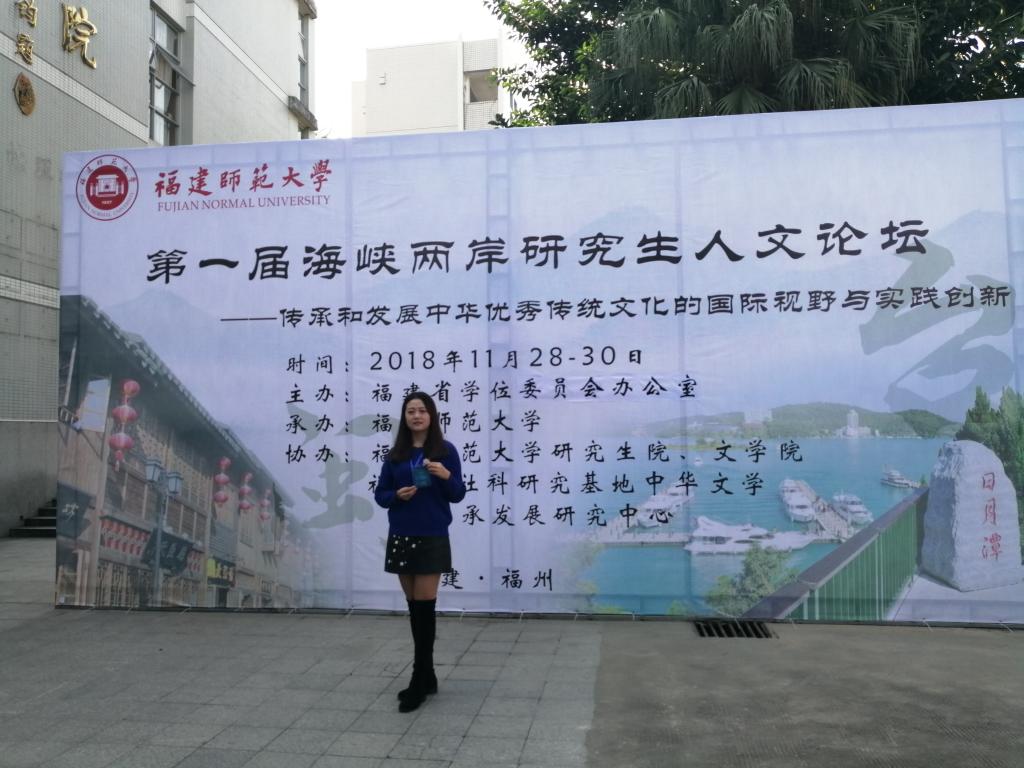 20181128-30日,我院马克思主义哲学专业硕士研究生杨丽同学受邀参加了由福建省学位委员会办公室主办、福建师范大学大学承办的“第一届海峡两岸研究生人文论坛”。本次论坛共有来自海峡两岸的51名研究生参会并且做报告。杨丽同学在分组讨论中以自己的论文“人类命运共同体:传统文化在当代的价值展现”为主题,结合所学专业做了简短的报告,从“和”“纳”“新”三个层次阐明为什么当前要愈加关注“文化”专题,为什么其中传统文化十分重要?表明人类命运共同体是如何发展了传统文化的精髓,使其具有强大的生命力和创新力。随后还参加了“国际视野下的当代中国文化形象”和“研究生学术规划与目标设定”为主题的圆桌会议的讨论。本次论坛旨在对中华优秀传统文化进行价值重估和深化阐释,同时也为海峡两岸研究生提供了一个交流的途径,促进大家的相互交流,共同成长。