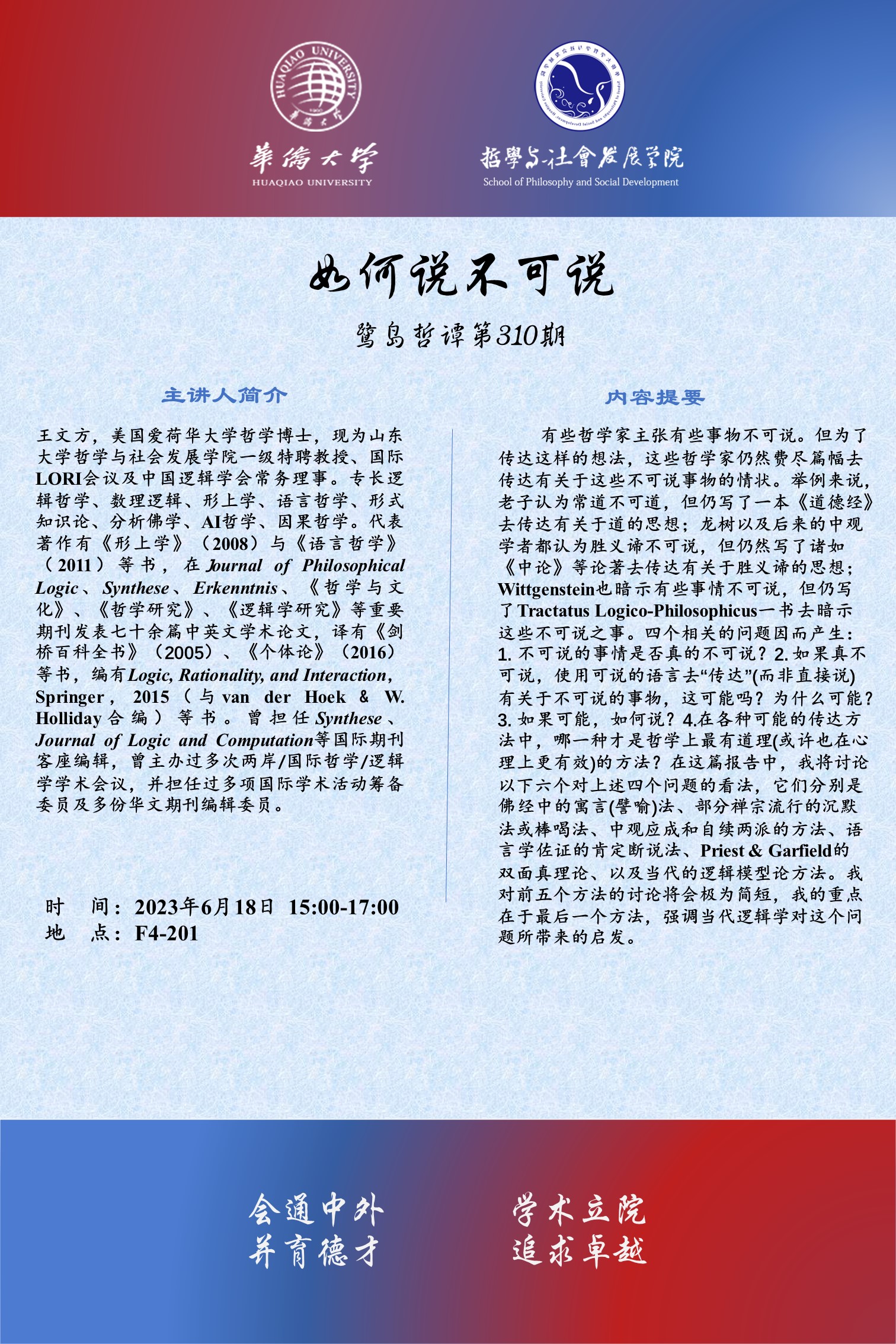【讲座预告】哲社学院鹭岛哲谭系列讲座第310期之如何说不可说