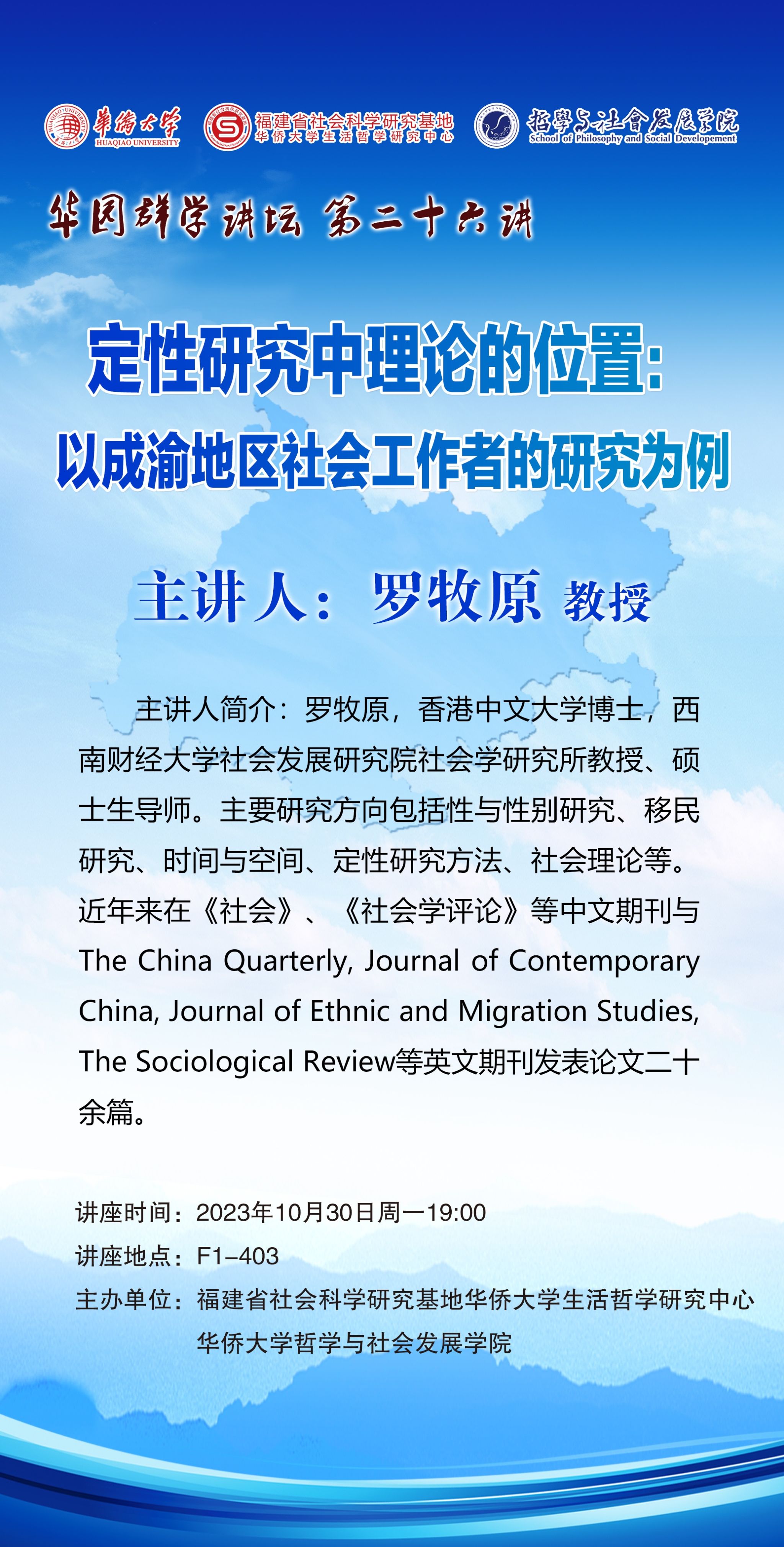 【讲座预告】哲社学院华园群学讲坛第二十六讲之定性研究中理论的位置:以成渝地区社会工作者的研究为例