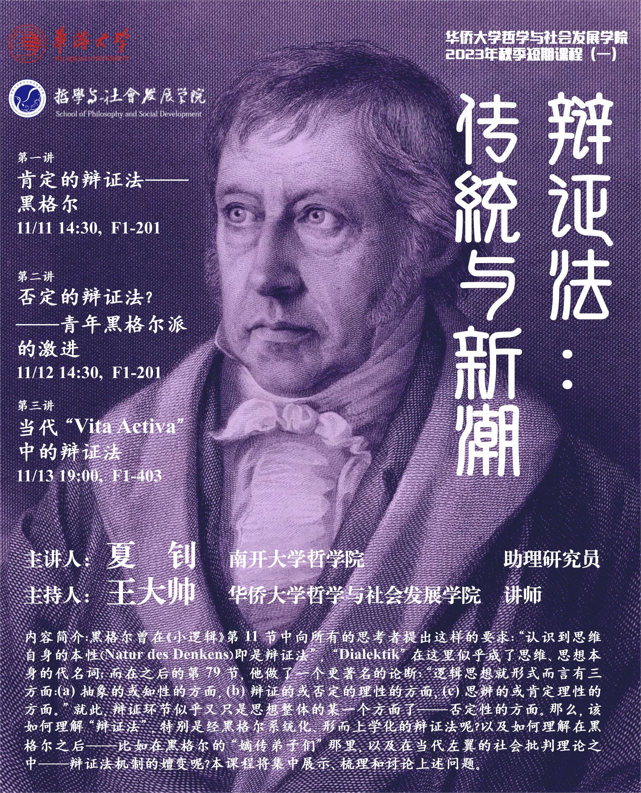 【讲座预告】yl9193永利集团2023年秋季短期课程(一)之辩证法:传统与新潮