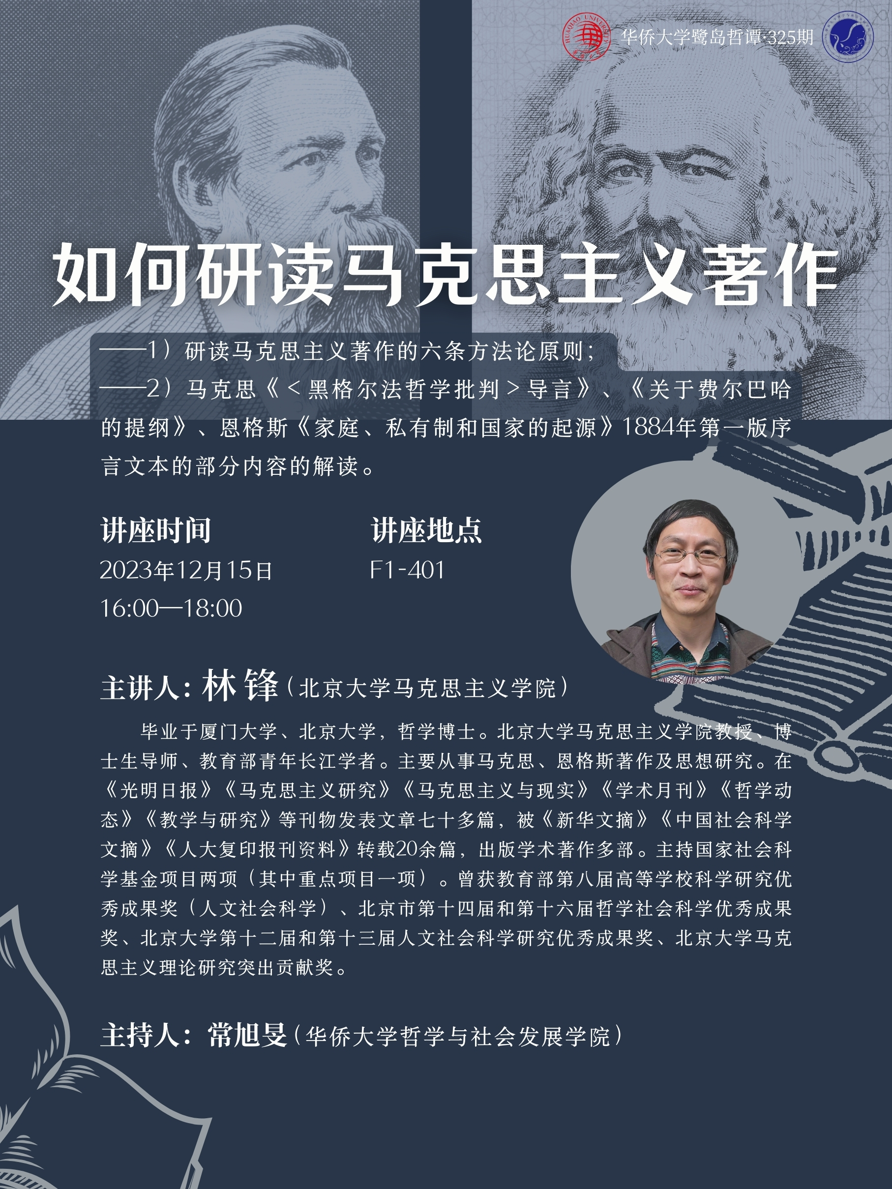 【讲座预告】哲社学院鹭岛哲谭系列讲座第325期之如何研读马克思主义著作