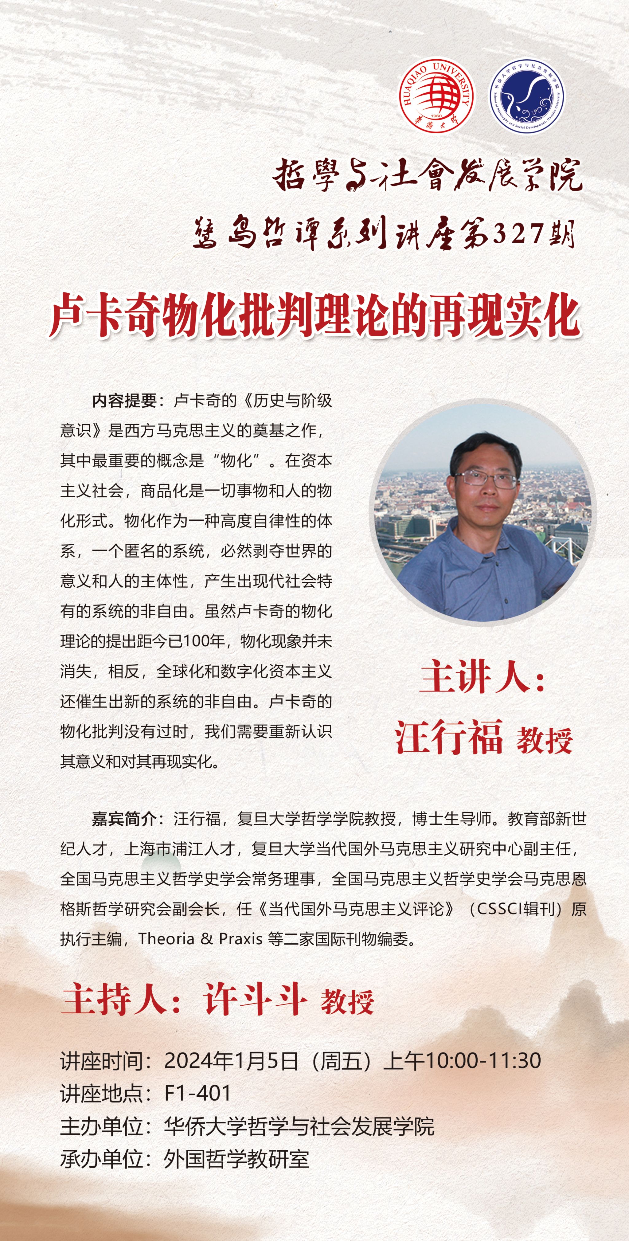 【讲座预告】哲社学院鹭岛哲谭系列讲座第327期之卢卡奇物化批判理论的再现实化