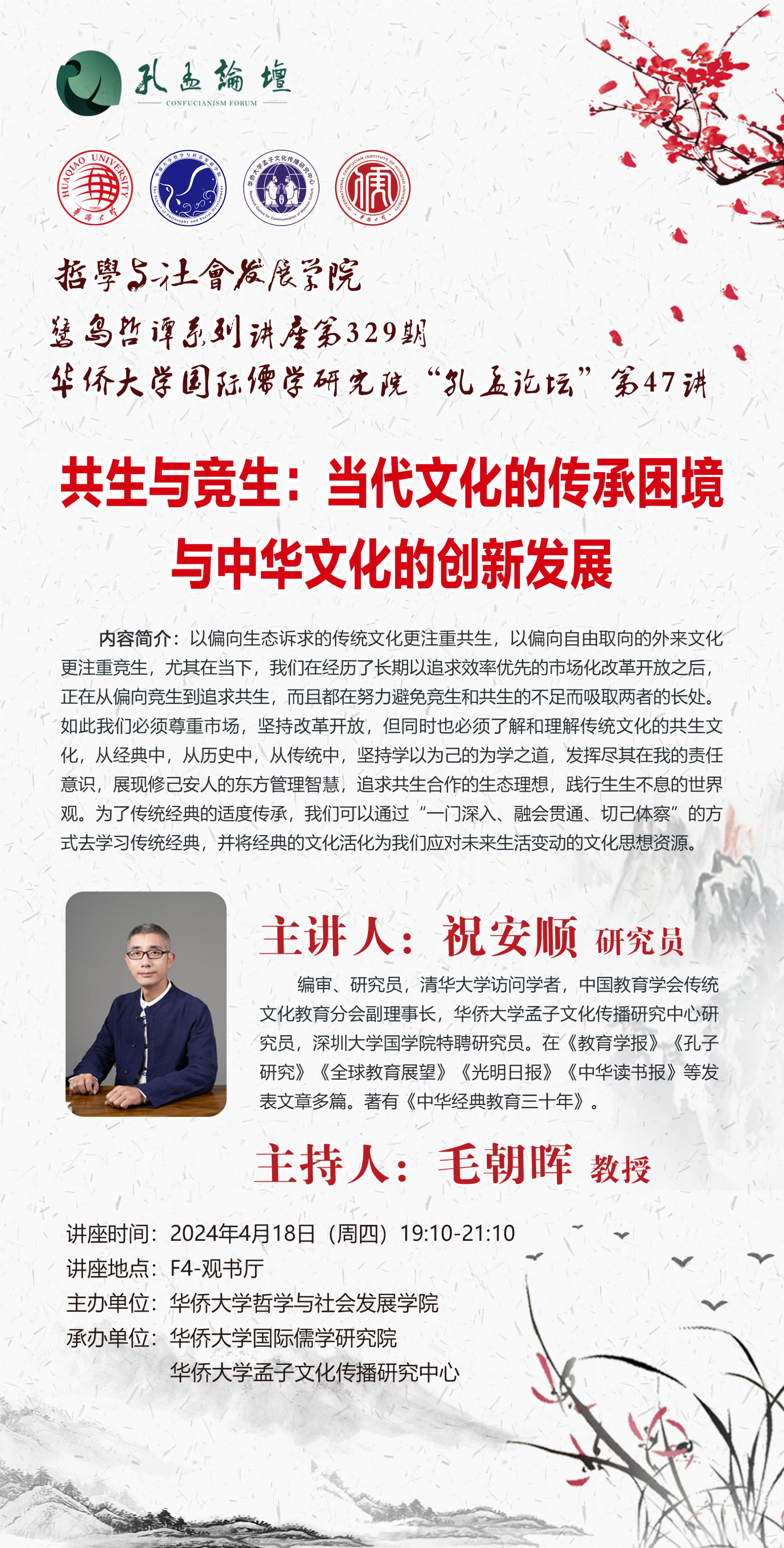 【讲座预告】共生与竞生:当代文化的传承困境与中华文化的创新发展