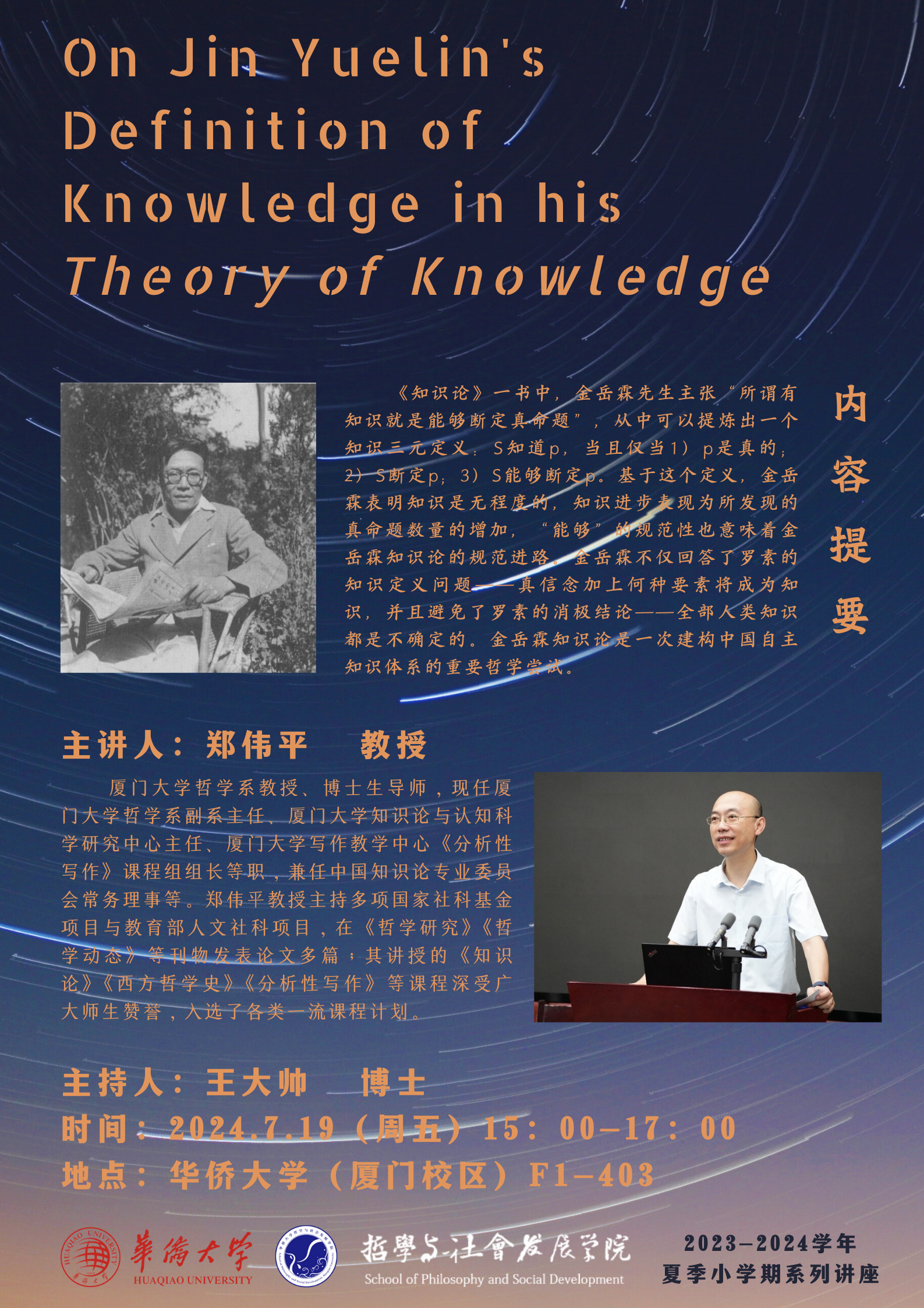 【讲座预告】On Jin Yuelin's Definition of Knowledge in his Theory of Knowledge