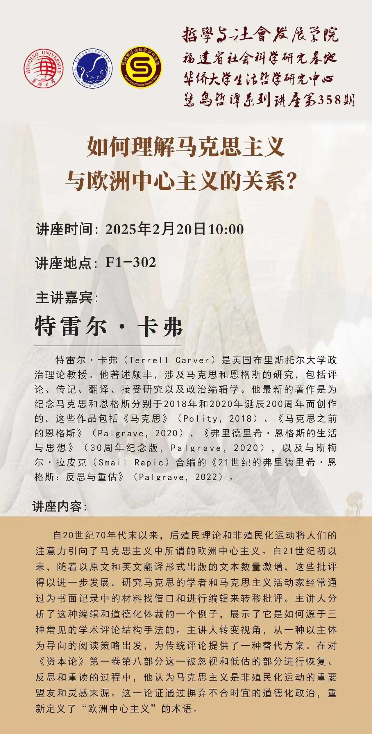 【讲座预告】哲社学院鹭岛哲谭系列讲座第358期之如何理解马克思主义与欧洲中心主义的关系