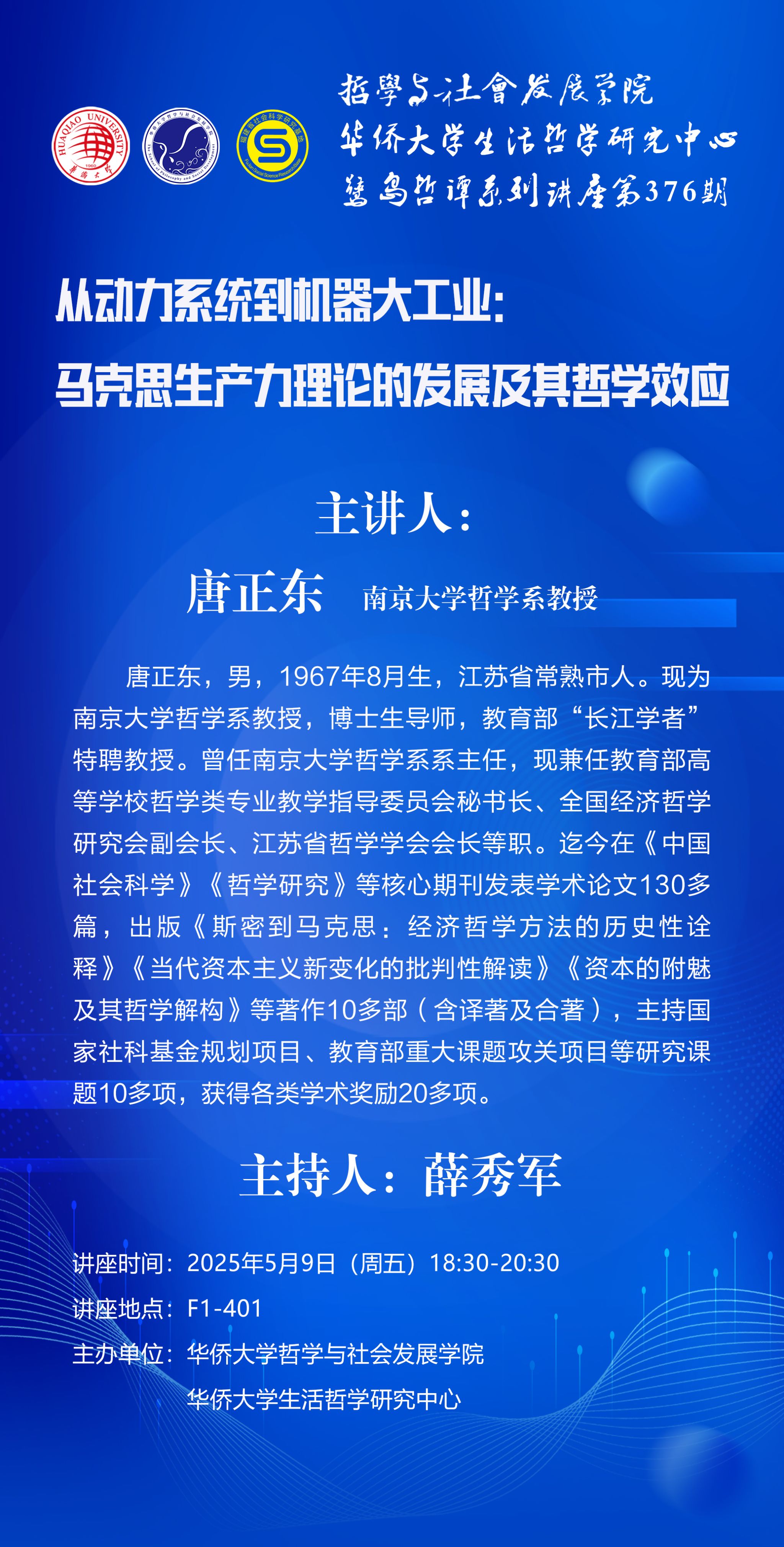 【讲座预告】哲社学院鹭岛哲谭系列讲座第376期之从动力系统到机器大工业:马克思生产力理论的发展及其哲学效应