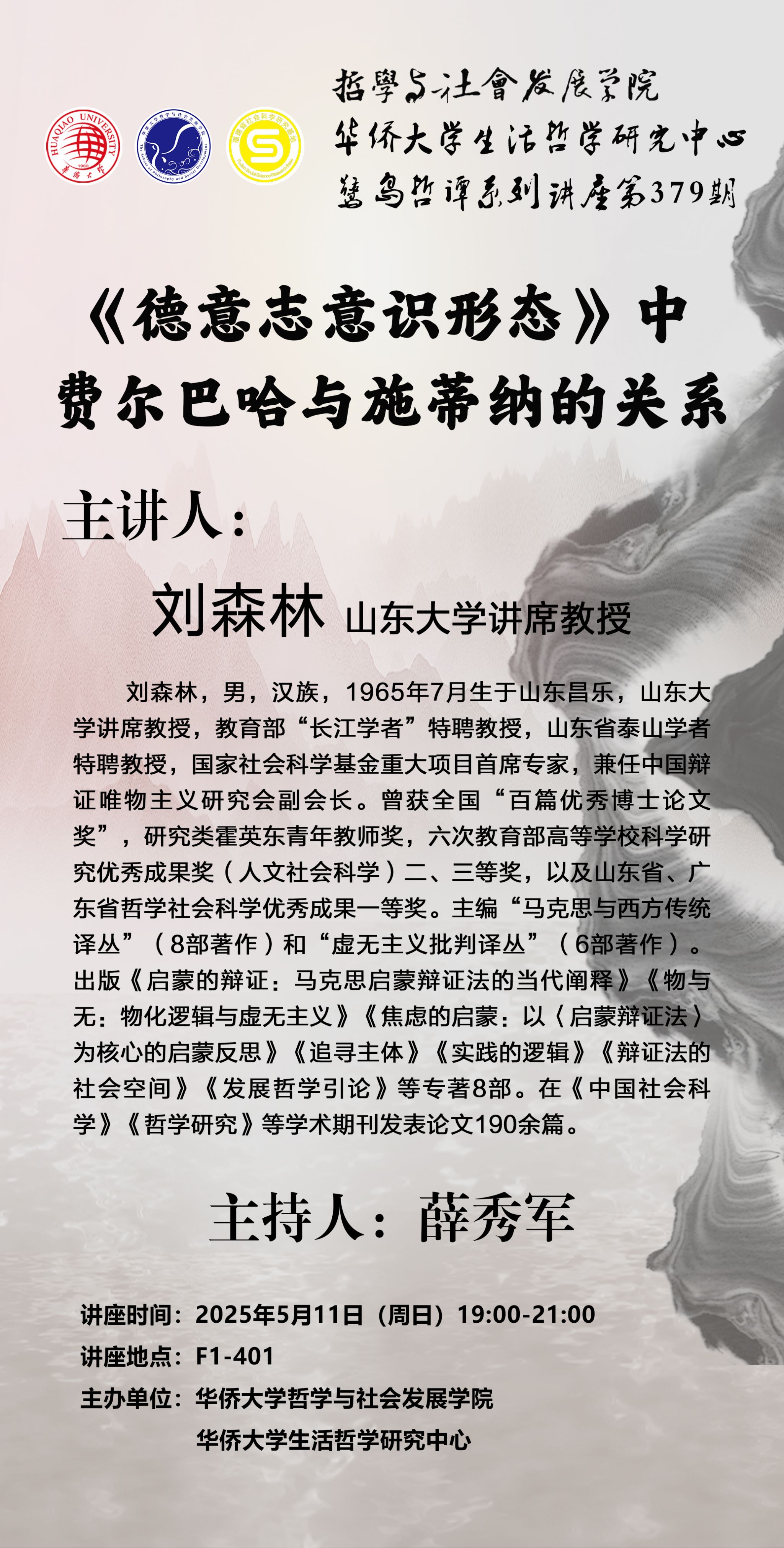 【讲座预告】哲社学院鹭岛哲谭系列讲座第379期之《德意志意识形态》中费尔巴哈与施蒂纳的关系