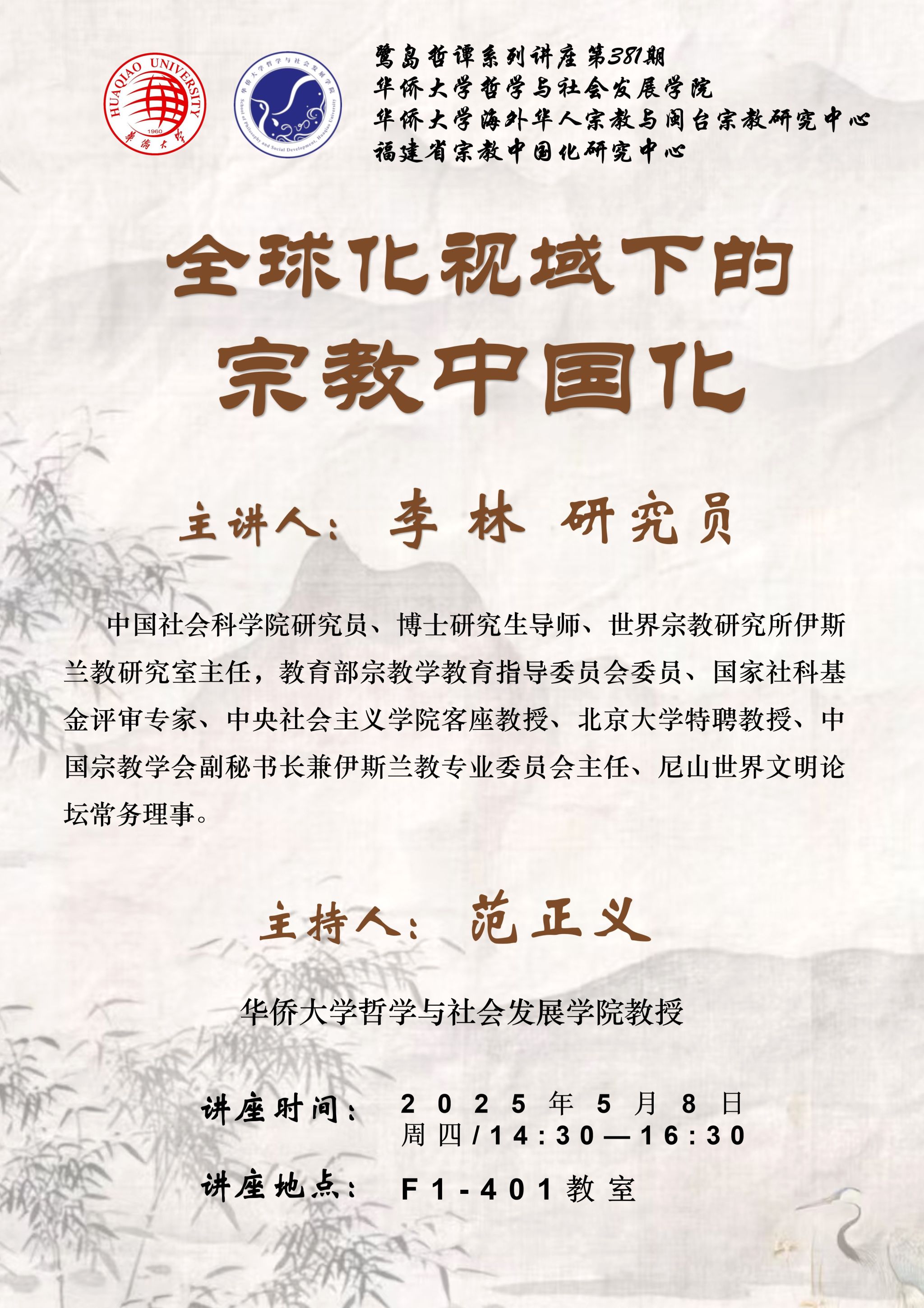 【讲座预告】哲社学院鹭岛哲谭系列讲座第381期之全球化视域下的宗教中国化